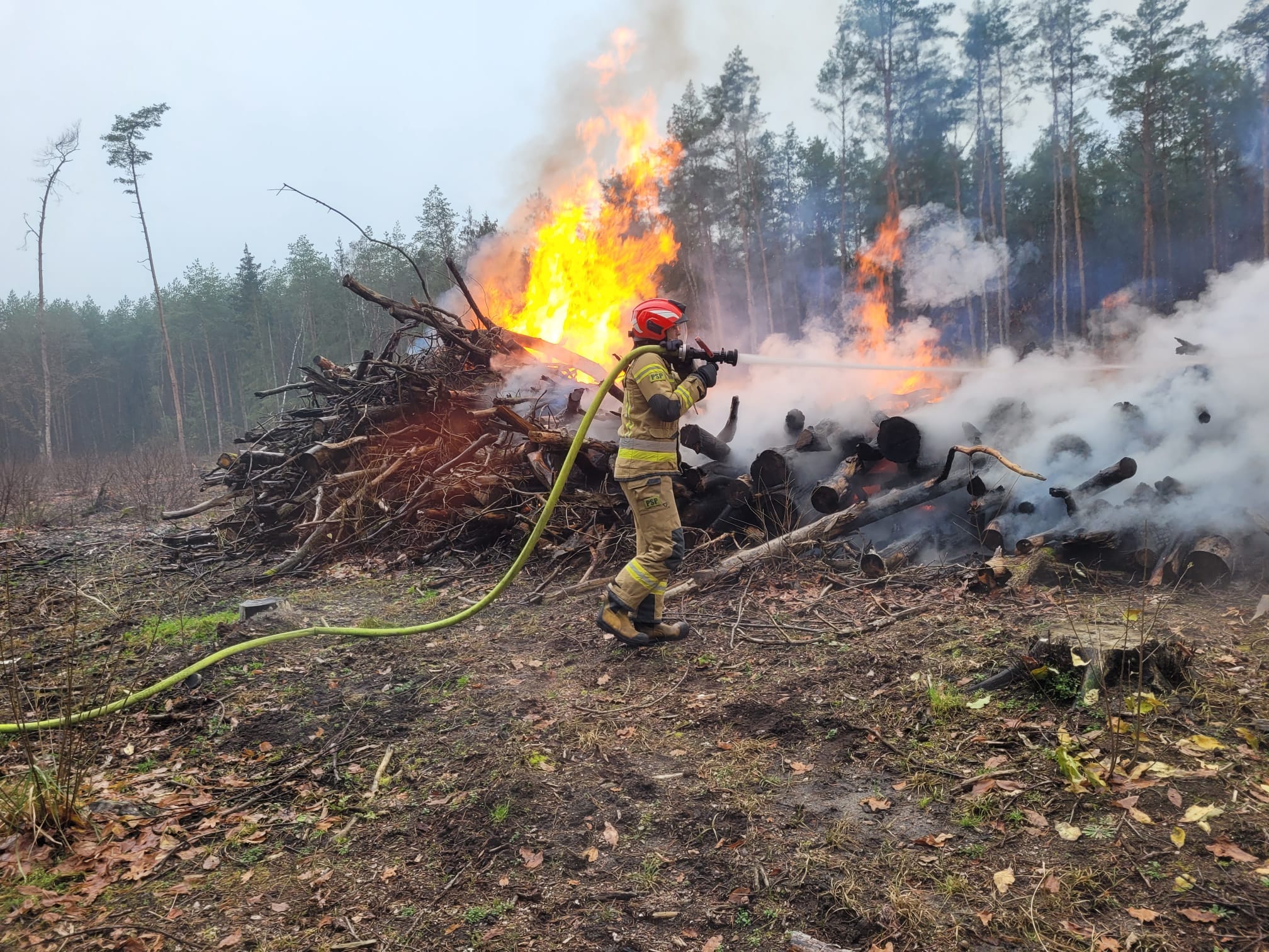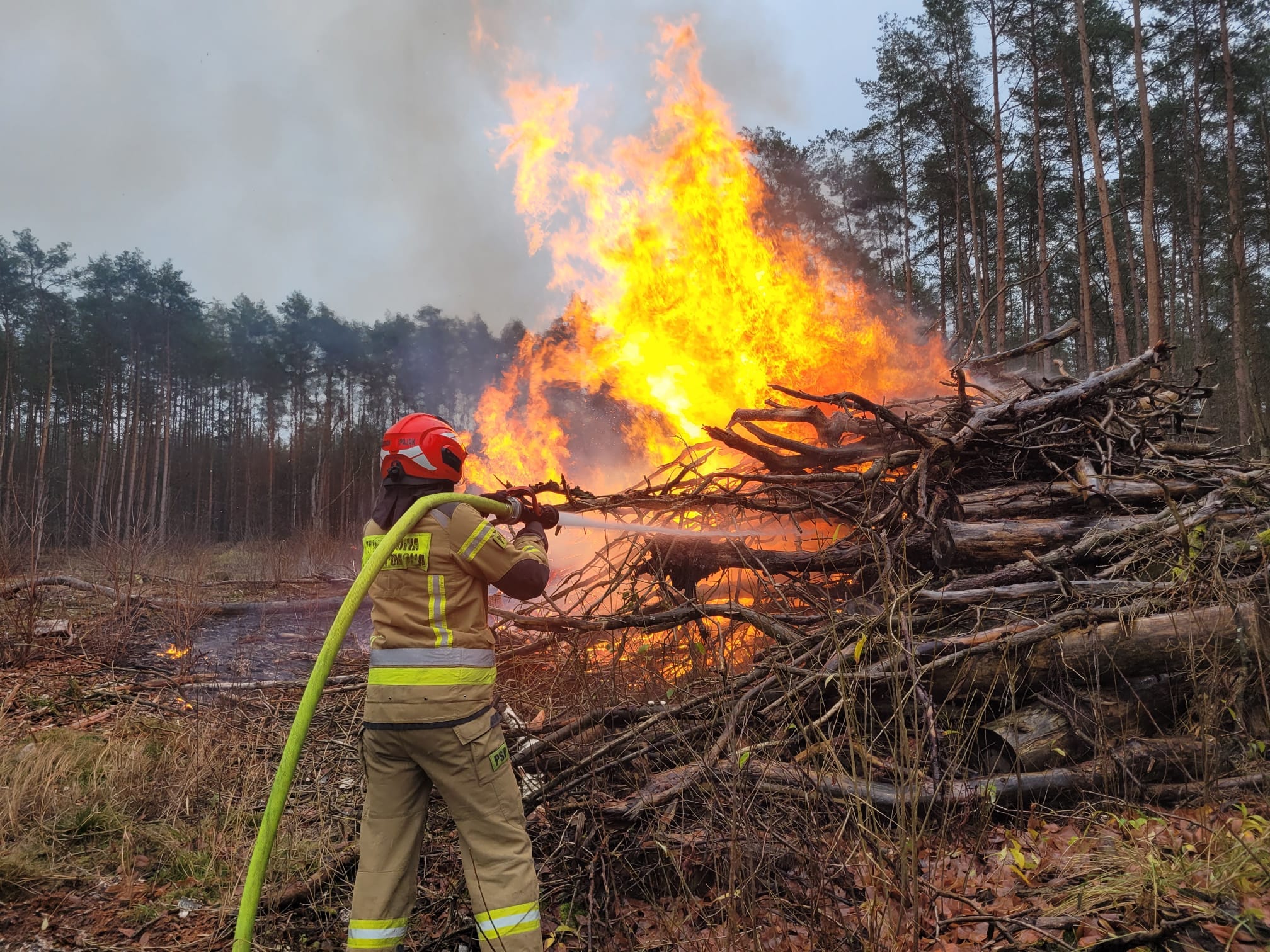 W chwili przybycia pierwszego zastępu na miejsca zdarzenia zastano stertę drewna która w całości objęta była pożarem.