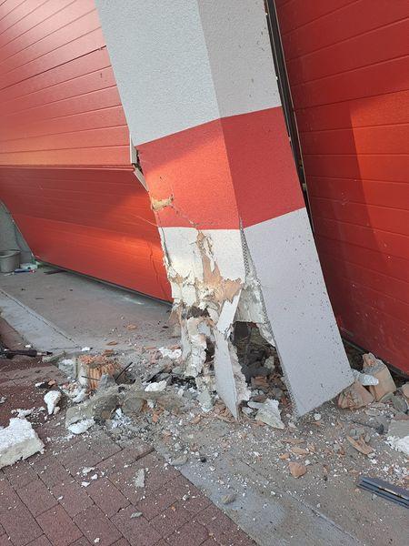 W tej chwili trwają prace nad zabezpieczeniem nadproży bram oraz budynku. Powiadomiono inspektorat budowlany, który wyda decyzję związaną z dalszym użytkowaniem obiektu.