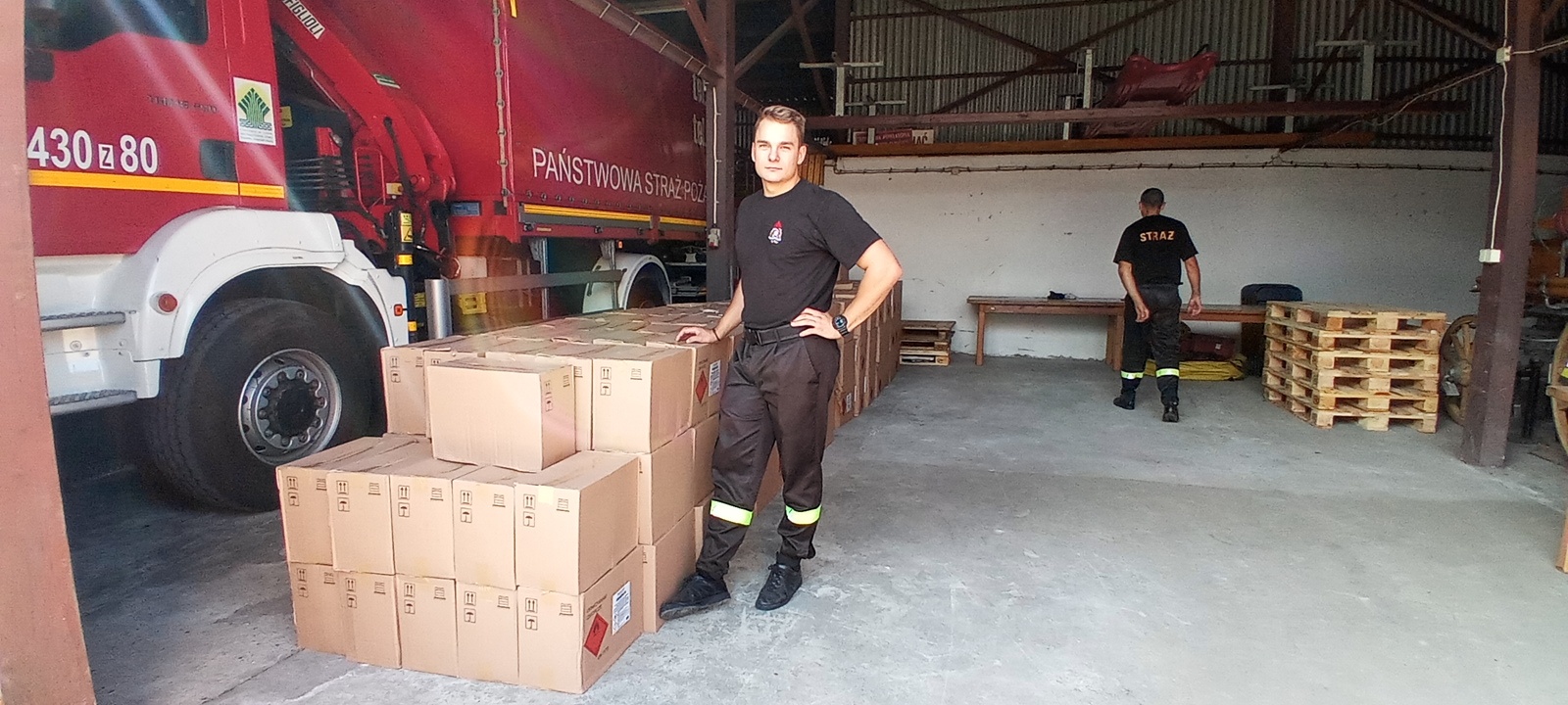 W dniu dzisiejszym po raz kolejny do magazynu KP PSP w Goleniowie w ramach akcji dystrybucji środków ochrony indywidualnej przez jednostki ochrony przeciwpożarowej, dostarczono z Agencji Rezerw Materiałowych w Ełku, płyny do dezynfekcji w ilości 3705 litrów. Do końca tygodnia powinny dotrzeć do nas również maski ochronne w ilości 9100 sztuk.
