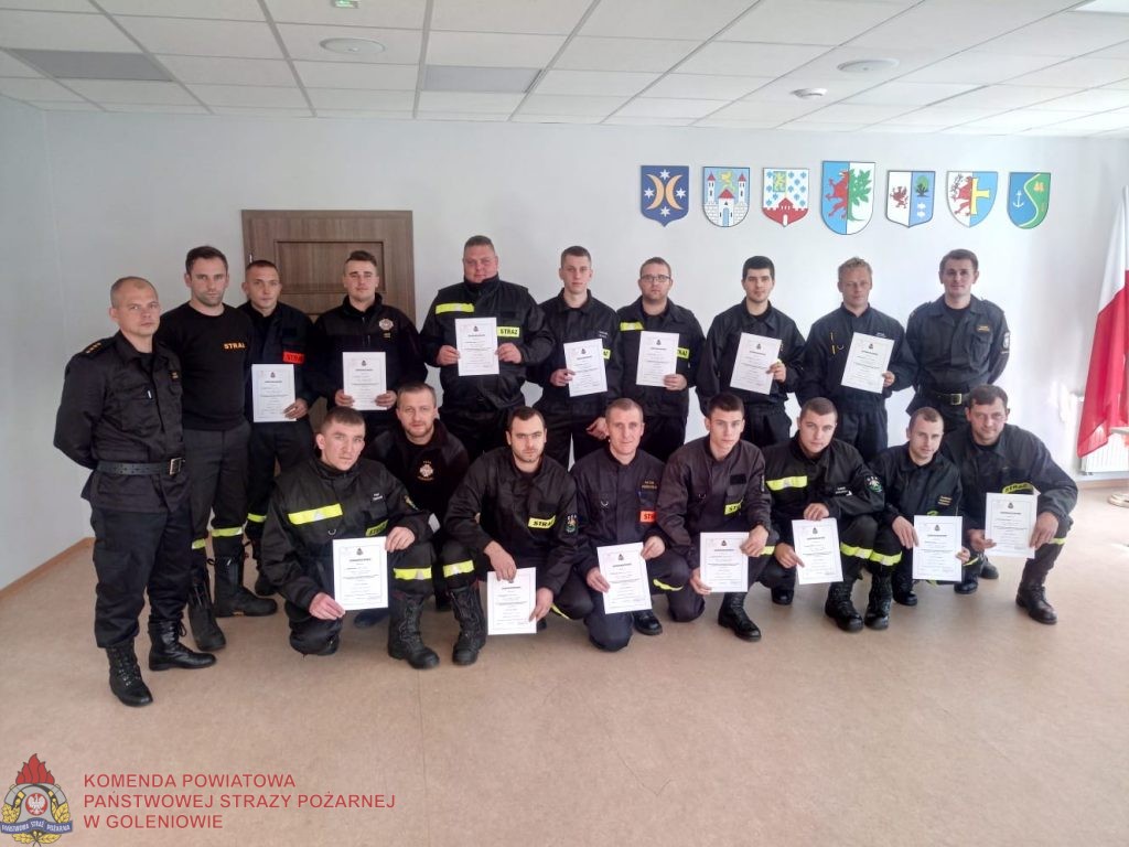 W dniach 27.09-06.10.2019 w KP PSP w Goleniowie odbyło się szkolenie Dowódców OSP, w którym udział brali druhowie z jednostek Ochotniczych Straży Pożarnych z Powiatu Goleniowskiego. Wykładowcami byli strażacy z Jednostki Ratowniczo-Gaśniczej oraz Wydziału Operacyjnego. Szkolenie zakończone było egzaminem sprawdzającym wiedzę kursantów. Zaświadczenia potwierdzające uzyskane uprawnienia do kierowania działaniami ratowniczymi uzyskało 18 strażaków.