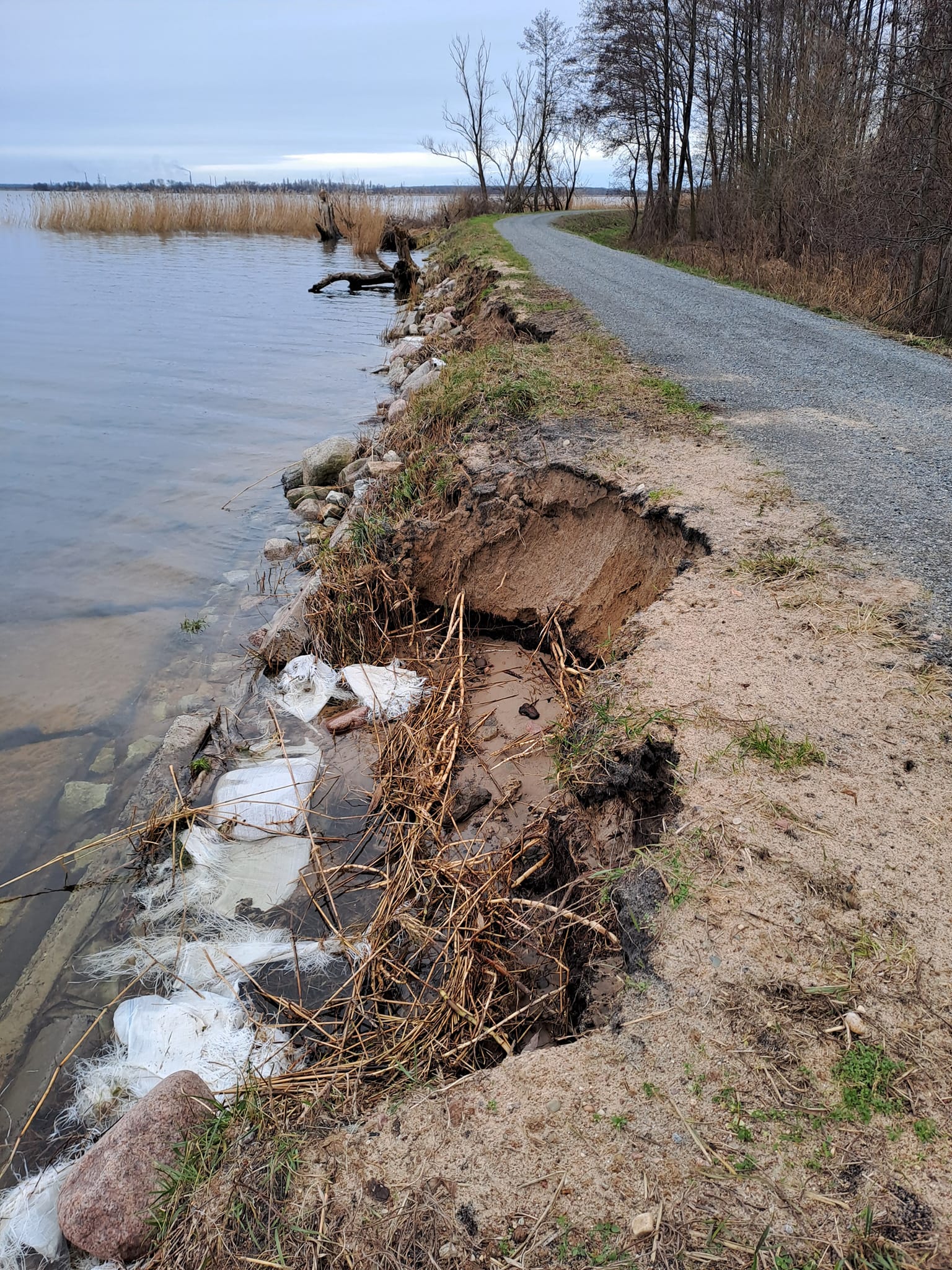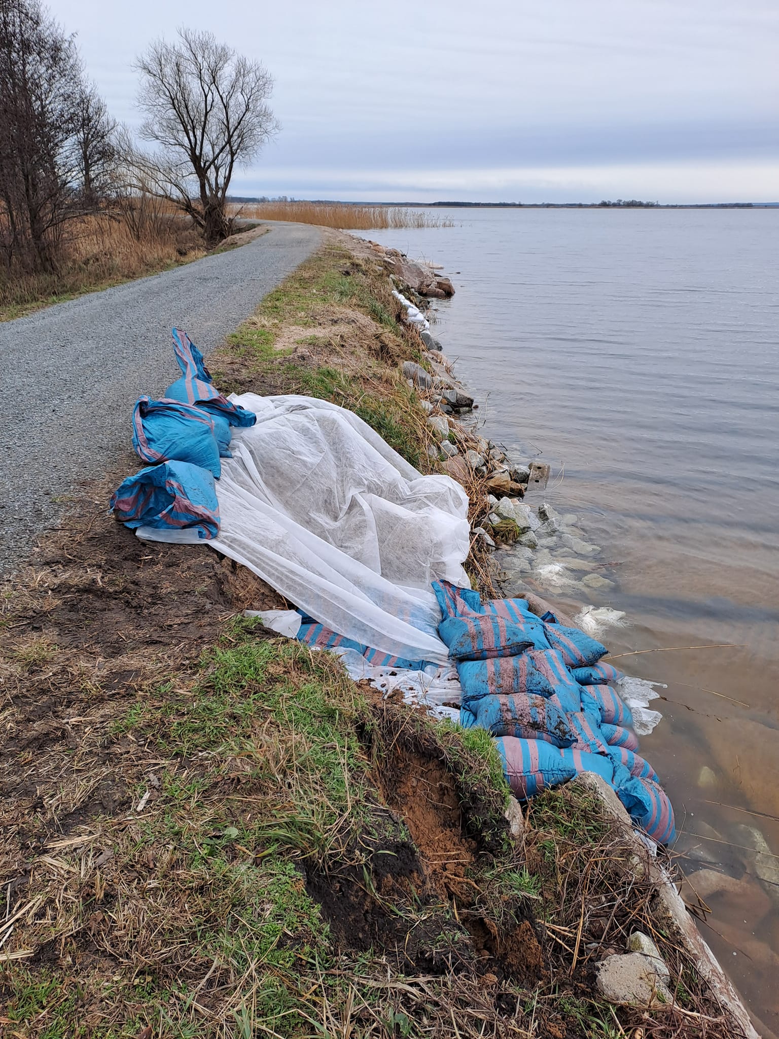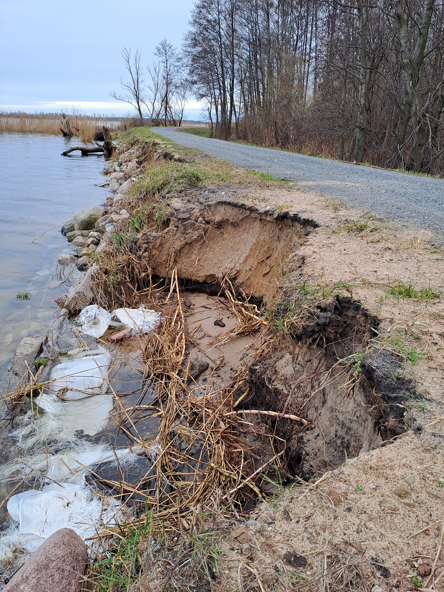 W odległości około 2 kilometrów od miejscowości doszło w kilku miejscach do uszkodzenia podstawy wału.
