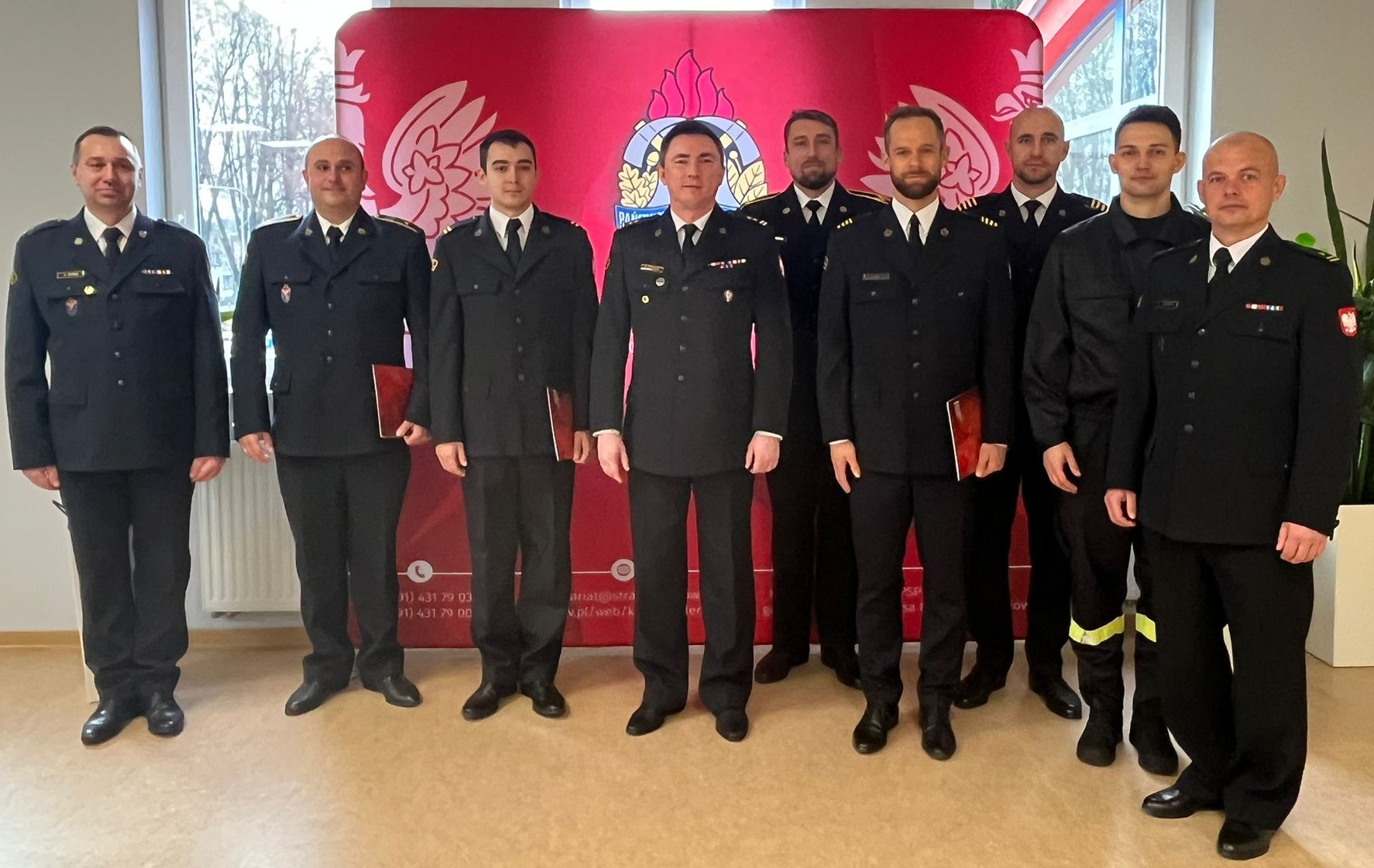 Ostatnim punktem uroczystości było wręczenie decyzji personalnych z nagrodami Komendanta Wojewódzkiego PSP oraz Komendanta Powiatowego PSP funkcjonariuszom: