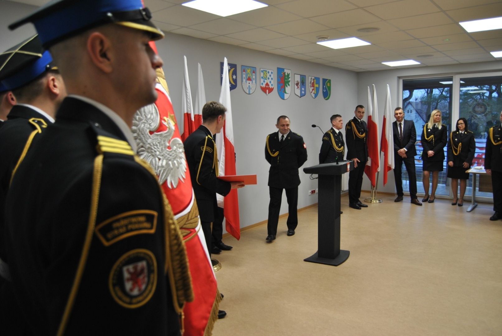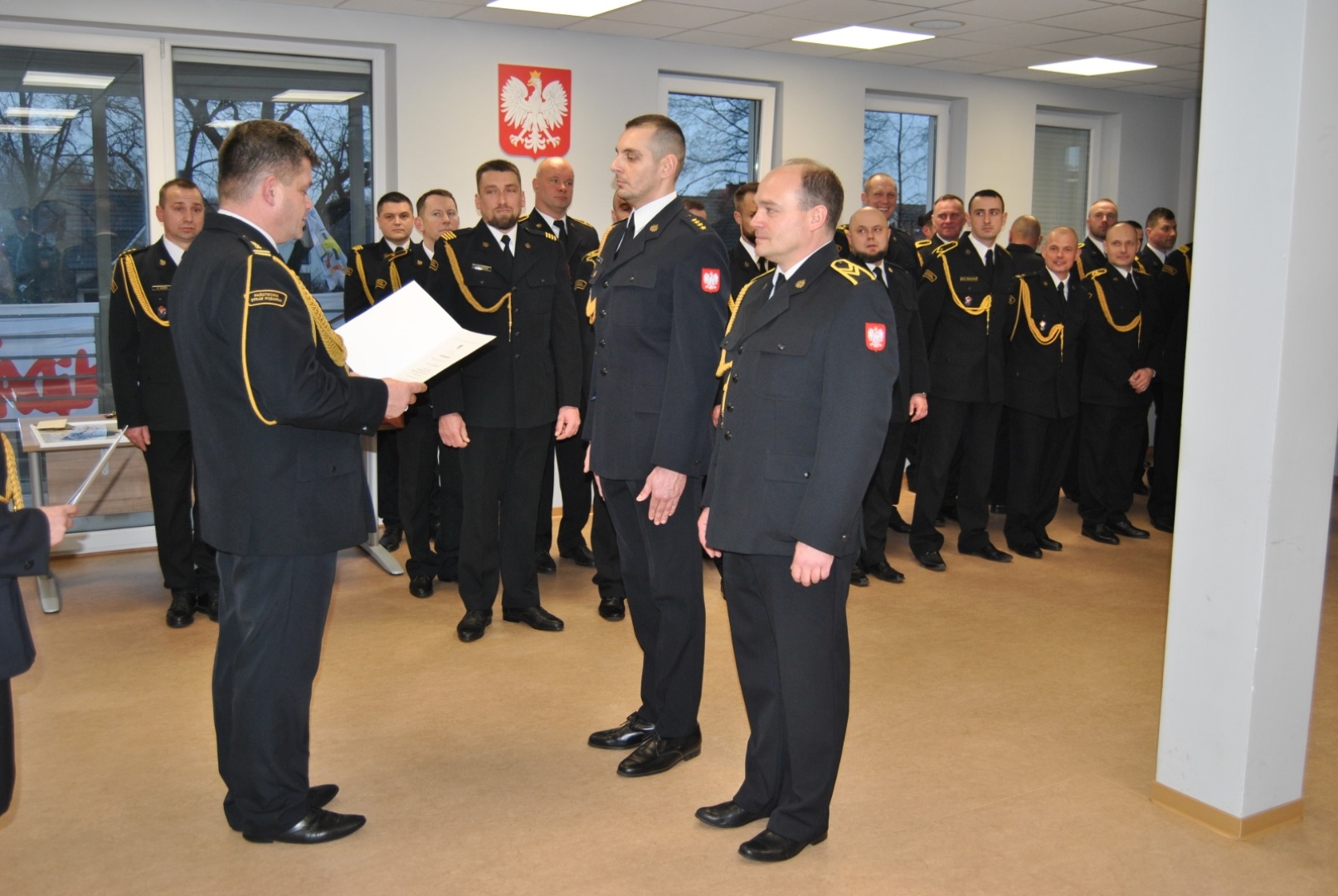 W tarkacie uroczystości st. bryg. Arkadiusz Skrzypczak mianował na wyższe stanowiska służbowe trzech sytazaków: