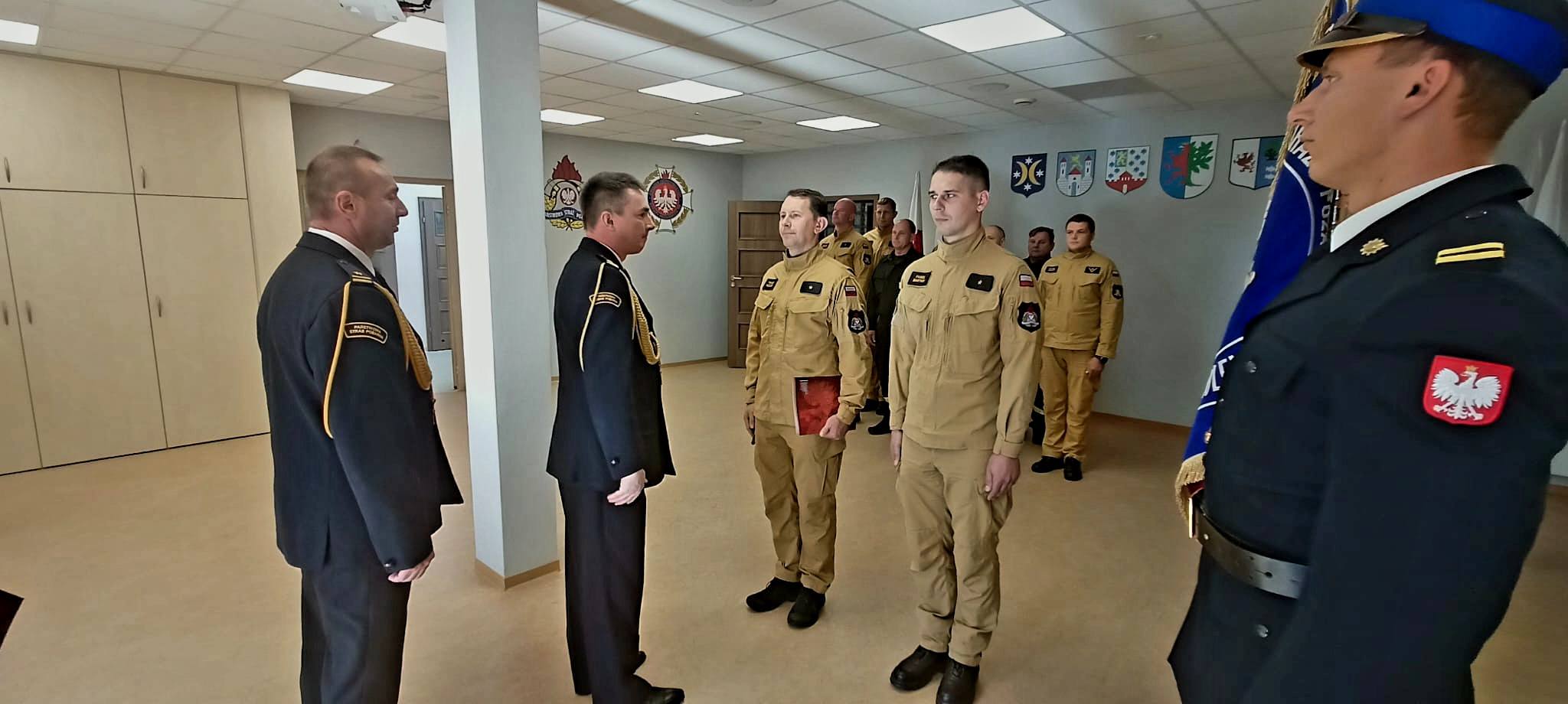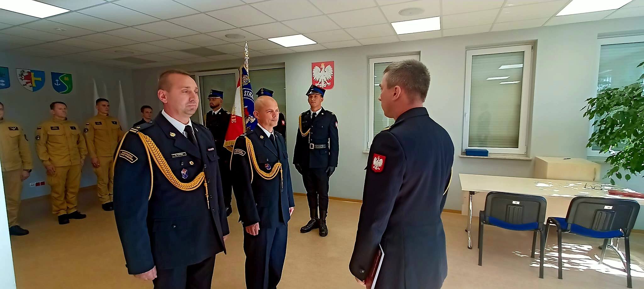 Komendant Powiatowy Państwowej Straży Pożarnej w Goleniowie bryg. Piotr Tuzimek wręczył również decyzje personalne dwóm funkcjonariuszom. Powierzył asp. Tomaszowi Piszczkowi pełnienie obowiązków służbowych na stanowisku Dowódcy zmiany, natomiast asp. Pawłowi Bartnikowi pełnienie obowiązków służbowych na stanowisku Dowódcy sekcji.