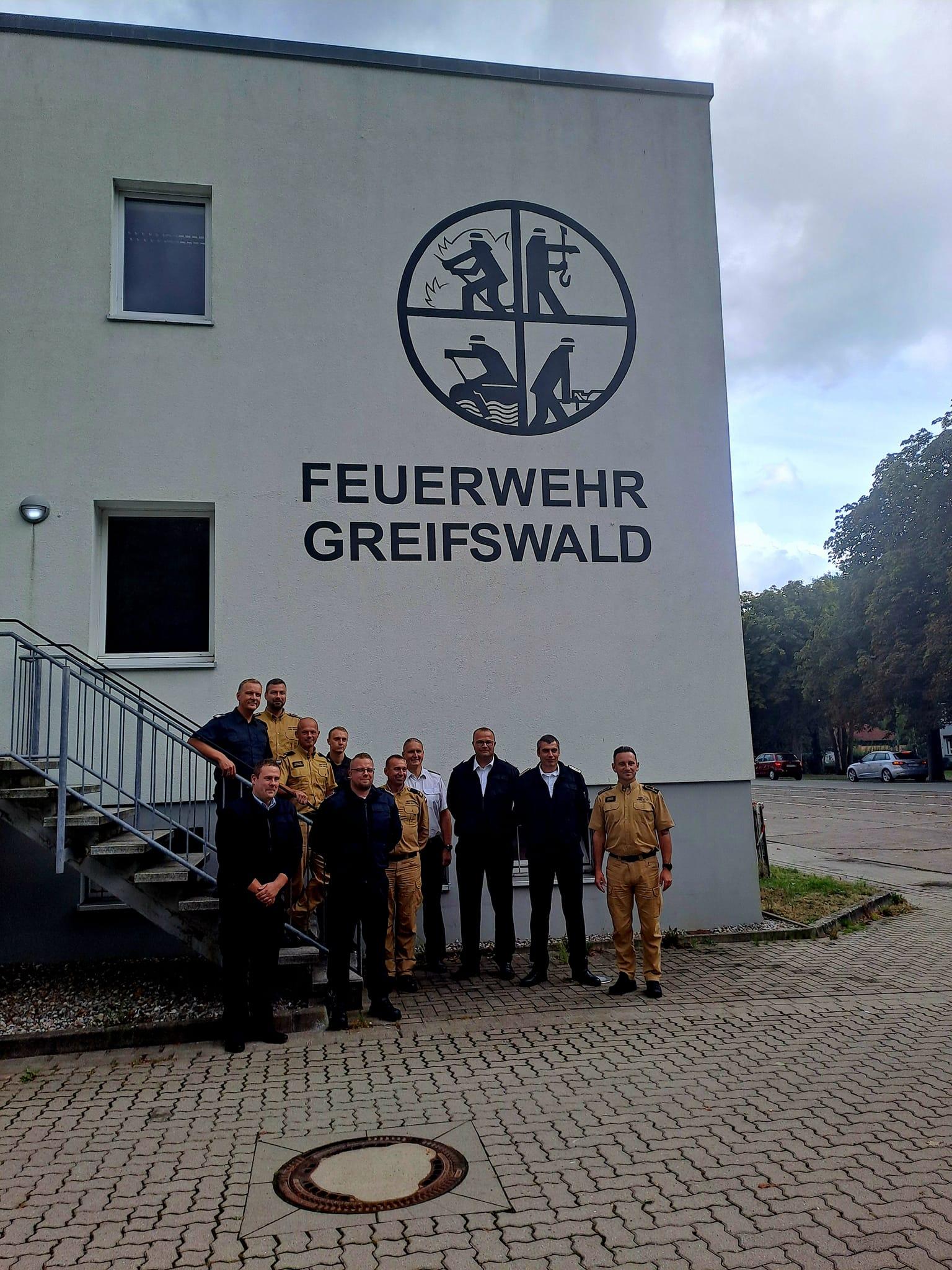 W ramach kontynuacji współpracy zainicjowanej przez stronę niemiecką 19 czerwca 2024 r., pięcioosobowa delegacja goleniowskich strażaków wspieranych przez dwóch pracowników Gminy Goleniów, wzięła udział w oficjalnym spotkaniu z władzami miasta Greifswald reprezentowanym przez Panią Wiceburmistrz Jeannette von Busse oraz przedstawicielami niemieckiej zawodowej i ochotniczej straży pożarnej.