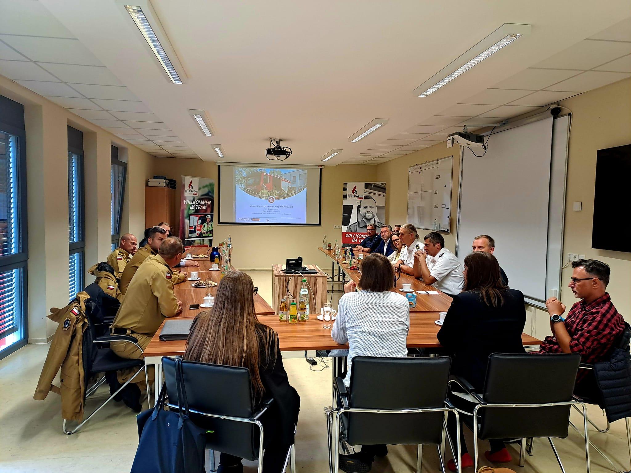 Wizyta rozpoczęła się od prezentacji struktur zawodowej i ochotniczej straży w Greifswaldzie. Następnie omówiono i przedstawiono działalność operacyjną, prewencyjną i szkoleniową niemieckich strażaków.