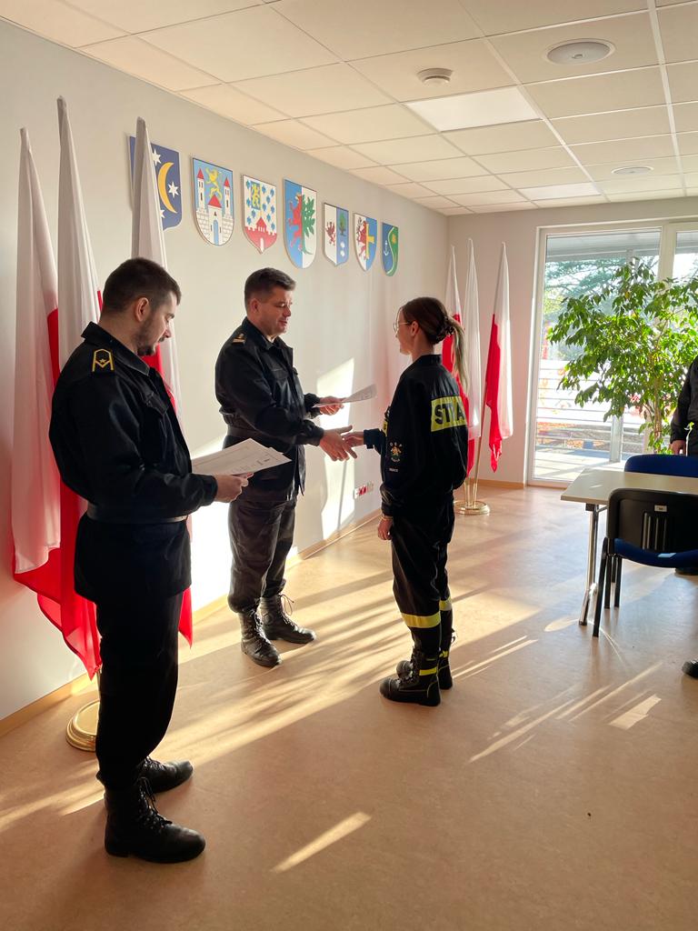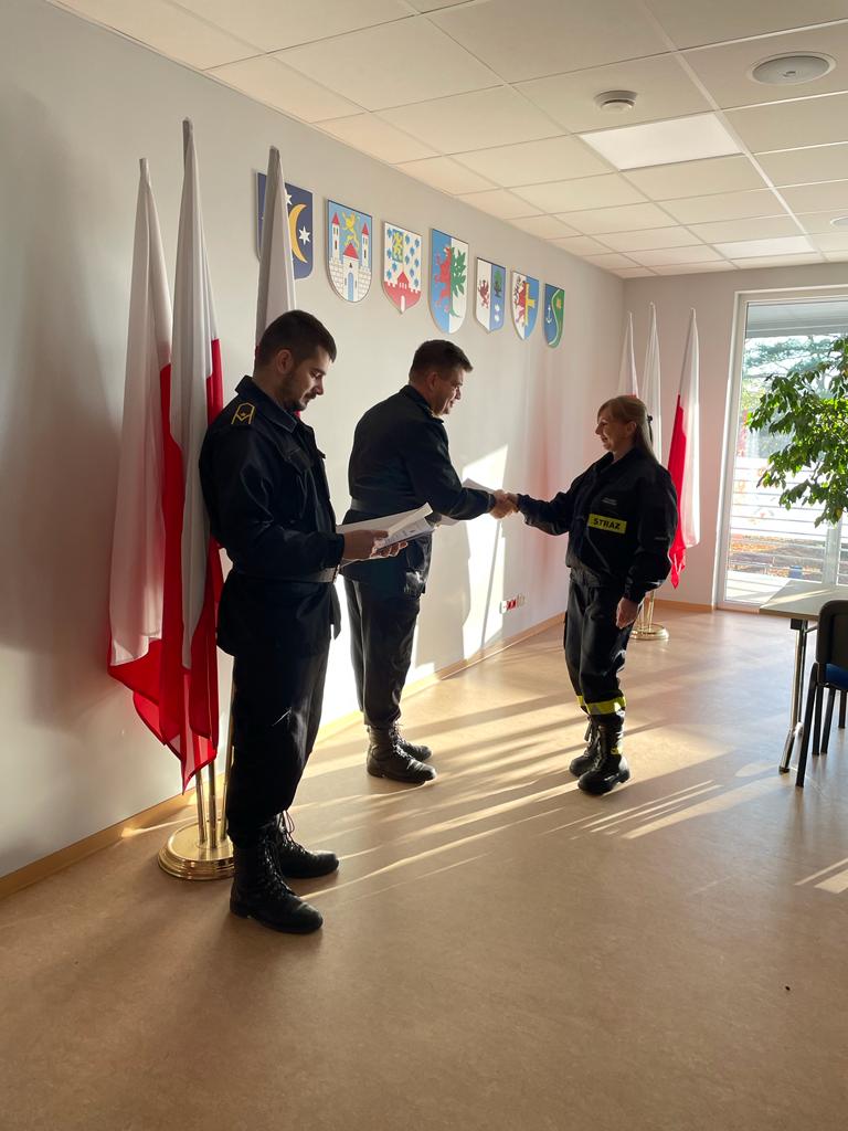 W dniu 6 listopada 2022 r. Komendant Powiatowy PSP w Goleniowie– st. bryg. Arkadiusz Skrzypczak wraz z organizatorami szkolenia w siedzibie Komendy Powiatowej PSP w Goleniowie wręczył druhom z terenu powiatu goleniowskiego zaświadczenia o ukończeniu szkolenia podstawowego strażaków ratowników Ochotniczych Straży Pożarnych.