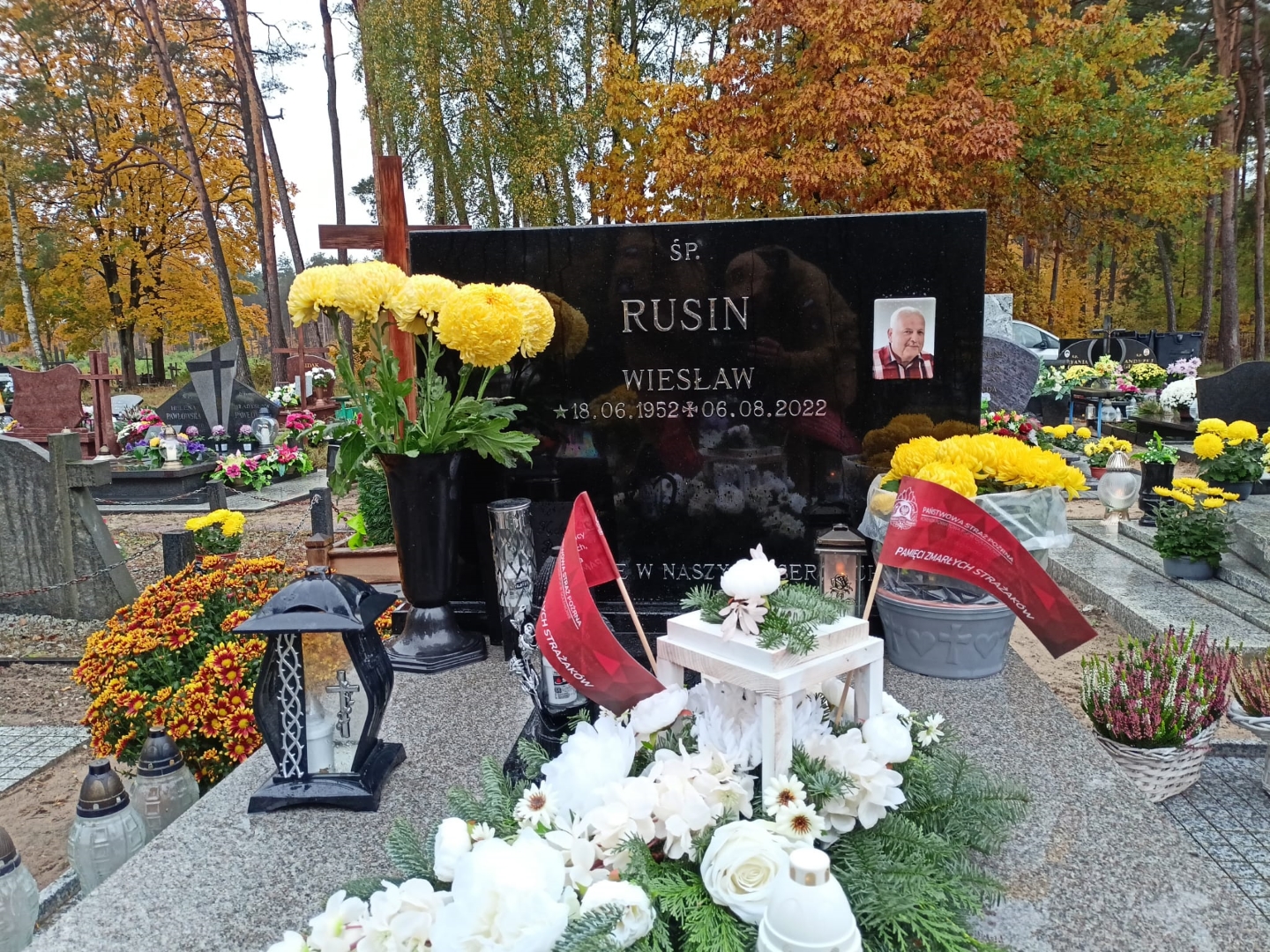 Groby zmarłych strażaków udekorowano symbolicznymi chorągiewkami oraz zapalono znicze, symbolizujące pamięć o kolegach, którzy odeszli na wieczną służbę.