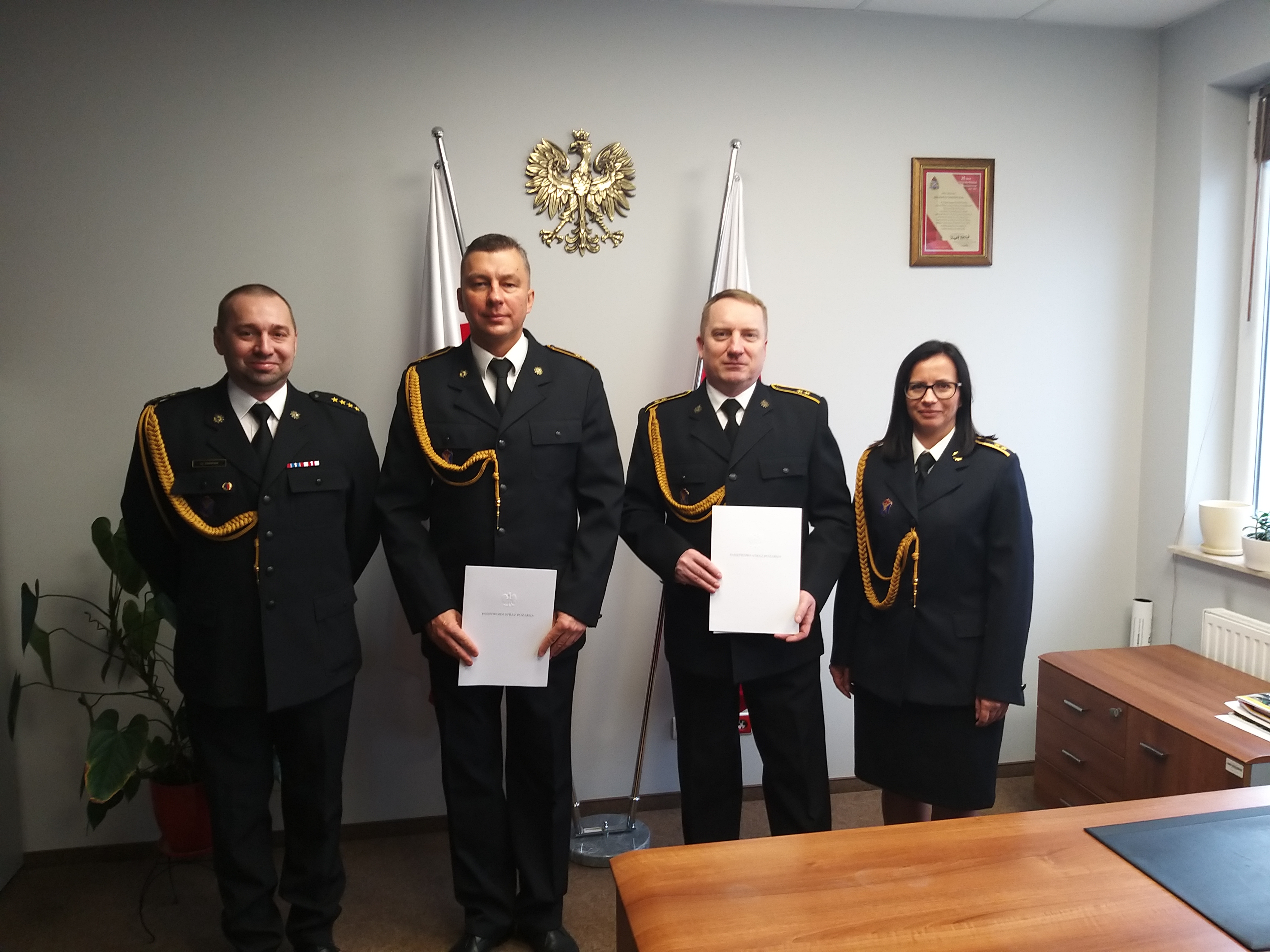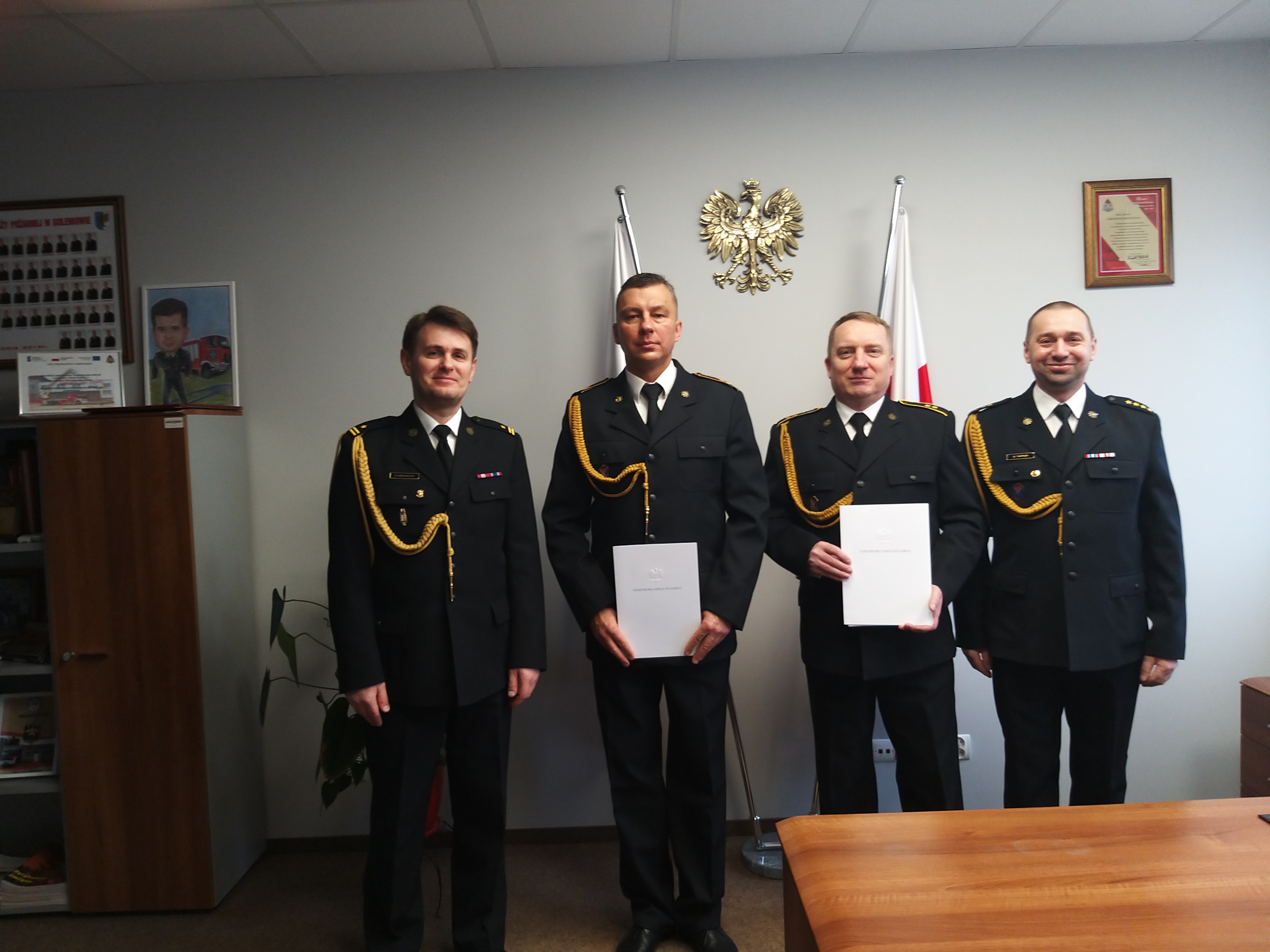 31 stycznia 2022 r. decyzje odwołujące z czynnej służby uroczyście wręczył Zastępca Komendanta Powiatowego PSP w Goleniowie mł. bryg. Marek Michalak w towarzystwie Dowódcy JRG st. kpt. Dariusza Tappera oraz Kadrowej st. asp. Agnieszki Dulaj.