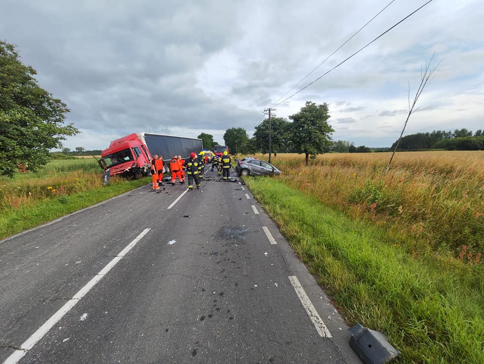 W dniu 09 lipca 2022 r. do Stanowiska Kierowania Komendanta Powiatowego PSP w Goleniowie wpłynęło zgłoszenie o zderzeniu dwóch pojazdów - ciężarowego i osobowego, które miało miejsce na drodze wojewódzkiej nr 113 przed Kolonią Radzanek.