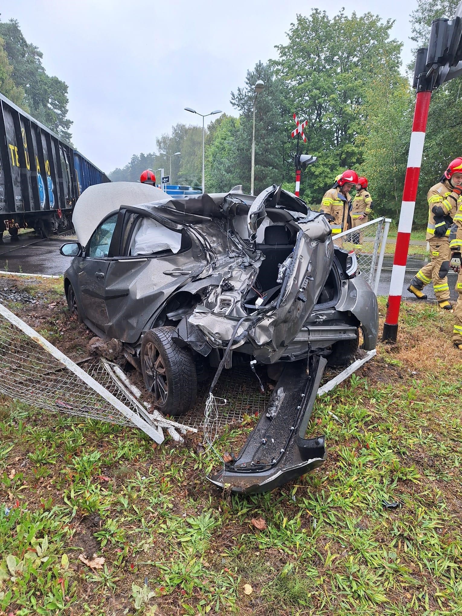 Zderzenie pociągu towarowego z autem osobowym