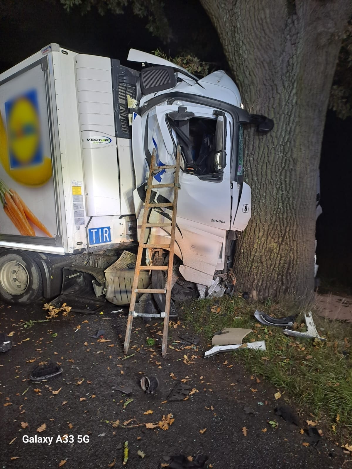 Zderzenie samochodu ciężarowego z drzewem