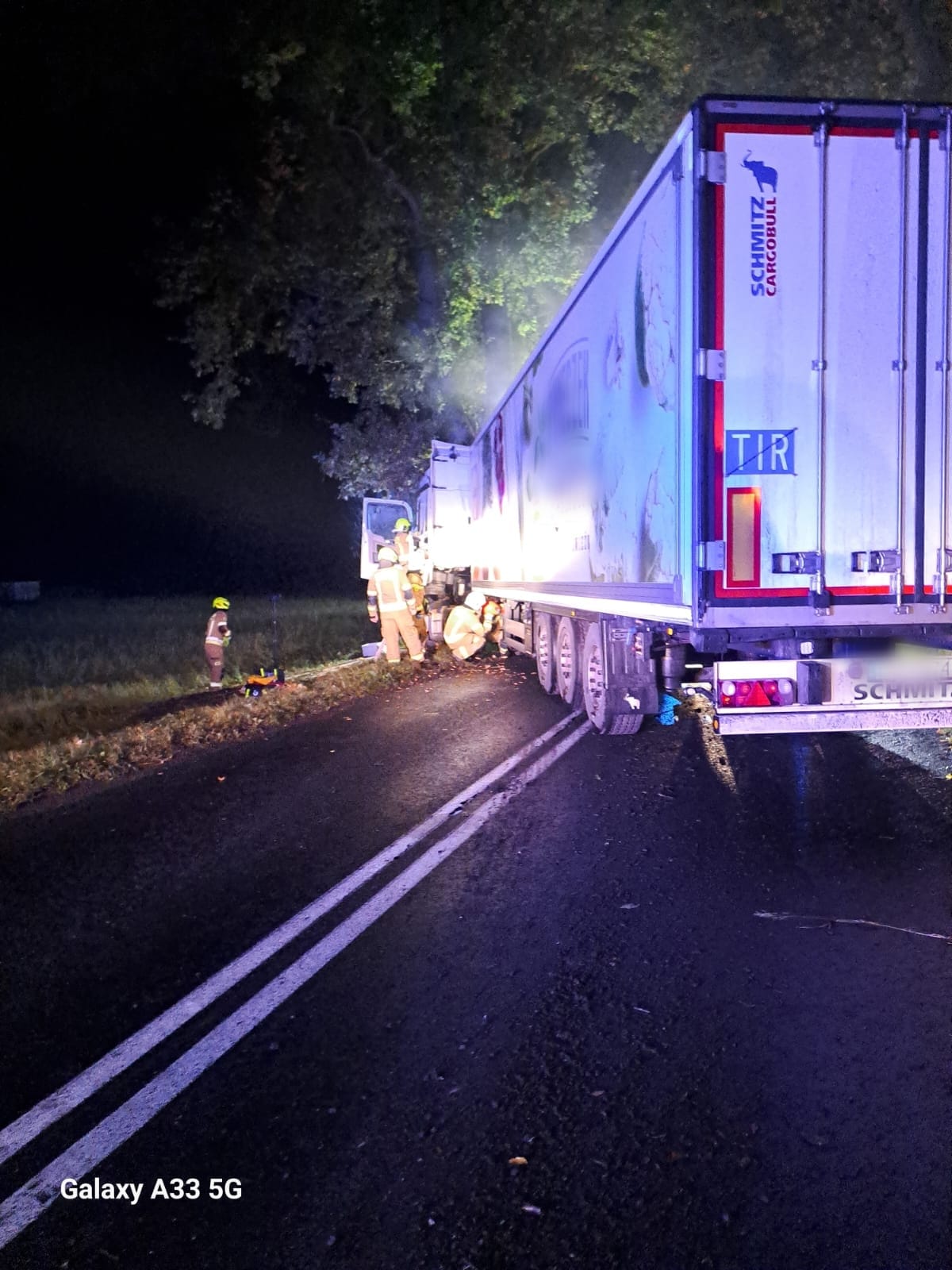 W dniu 22 października 2023 r. o godz. 23:48 do Stanowiska Kierowania Komendanta Powiatowego PSP w Goleniowie wpłynęło zgłoszenie o uderzeniu samochodu ciężarowego w drzewo, na drodze wojewódzkiej nr 106 w okolicach miejscowości Dębice.