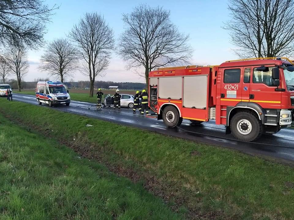 ➡️ Na miejscu zdarzenia zastano trzy samochody osobowe, którymi podróżowały cztery osoby, jedna z nich była zakleszczona w pojeździe więc do jej uwolnienia użyto narzędzi hydraulicznych.