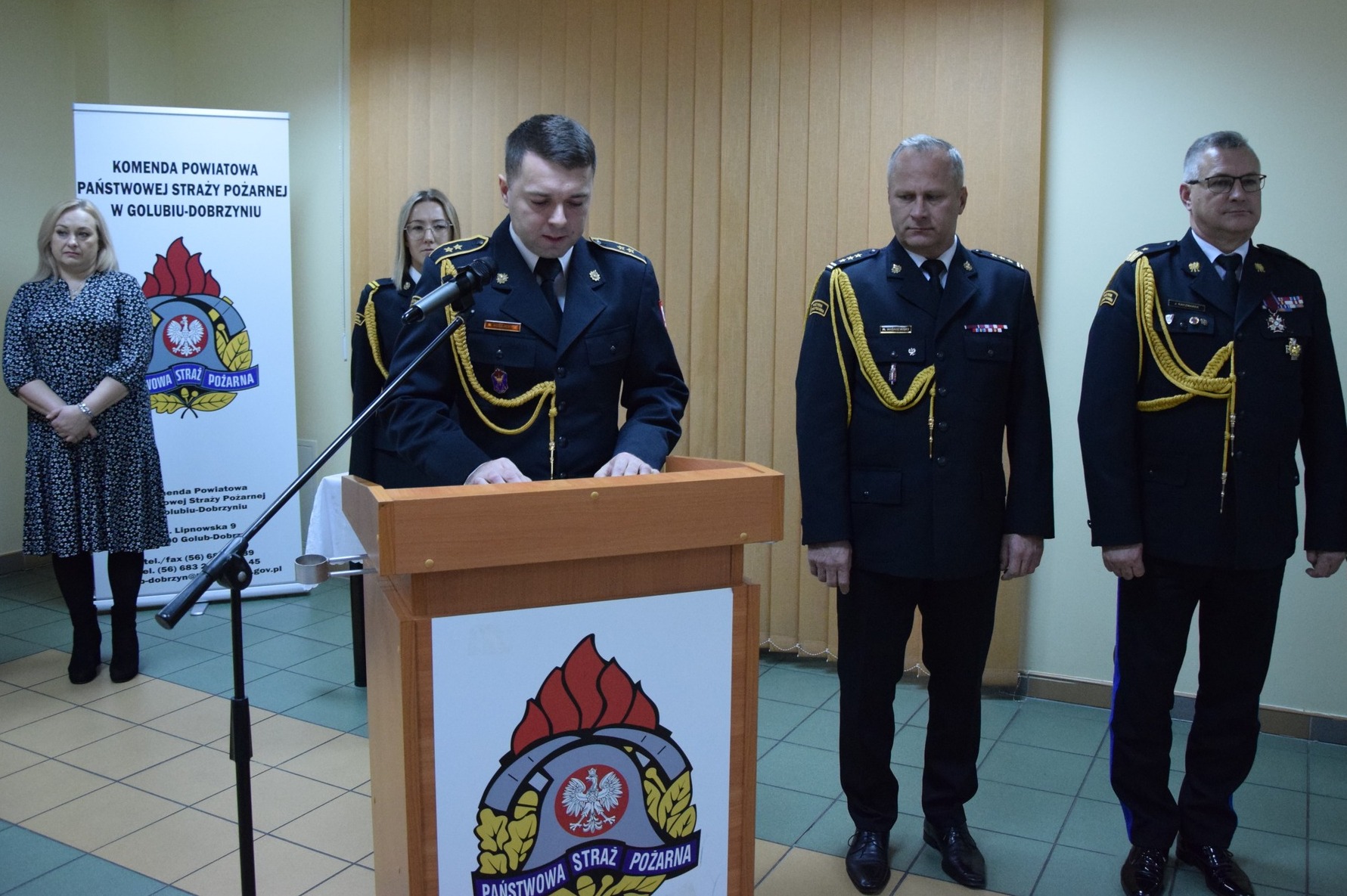 22 listopada 2023 r. w Komendzie Powiatowej Państwowej Straży Pożarnej w Golubiu-Dobrzyniu, odbyła się uroczysta zbiórka z okazji Narodowego Święta Niepodległości podczas której miało miejsce wręczenie wyższych stopni służbowych i wyróżnień funkcjonariuszom.