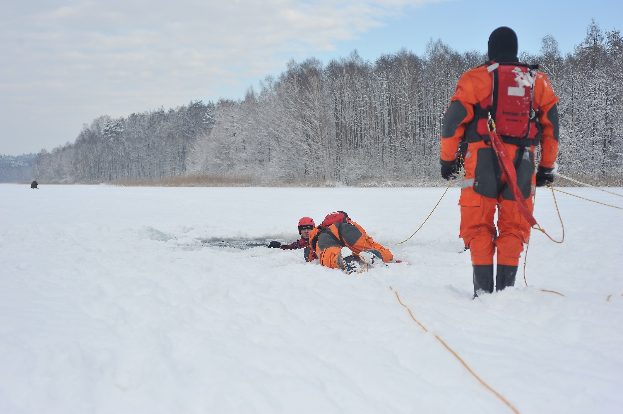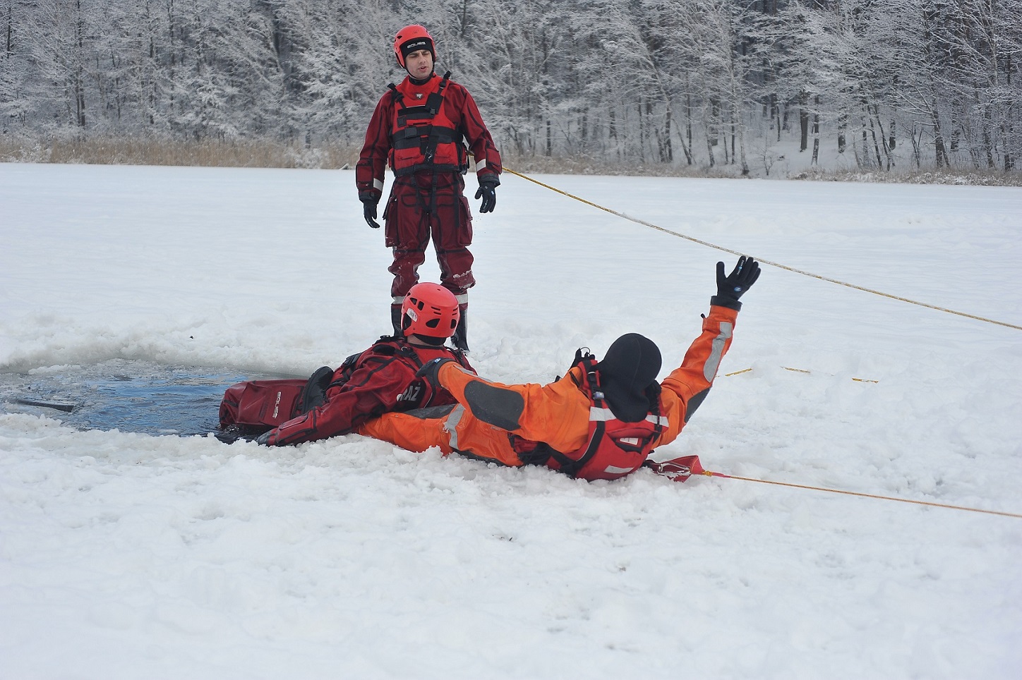 - przećwiczenie technik umożliwiających ewakuację poszkodowanych pod którymi załamał się lód,