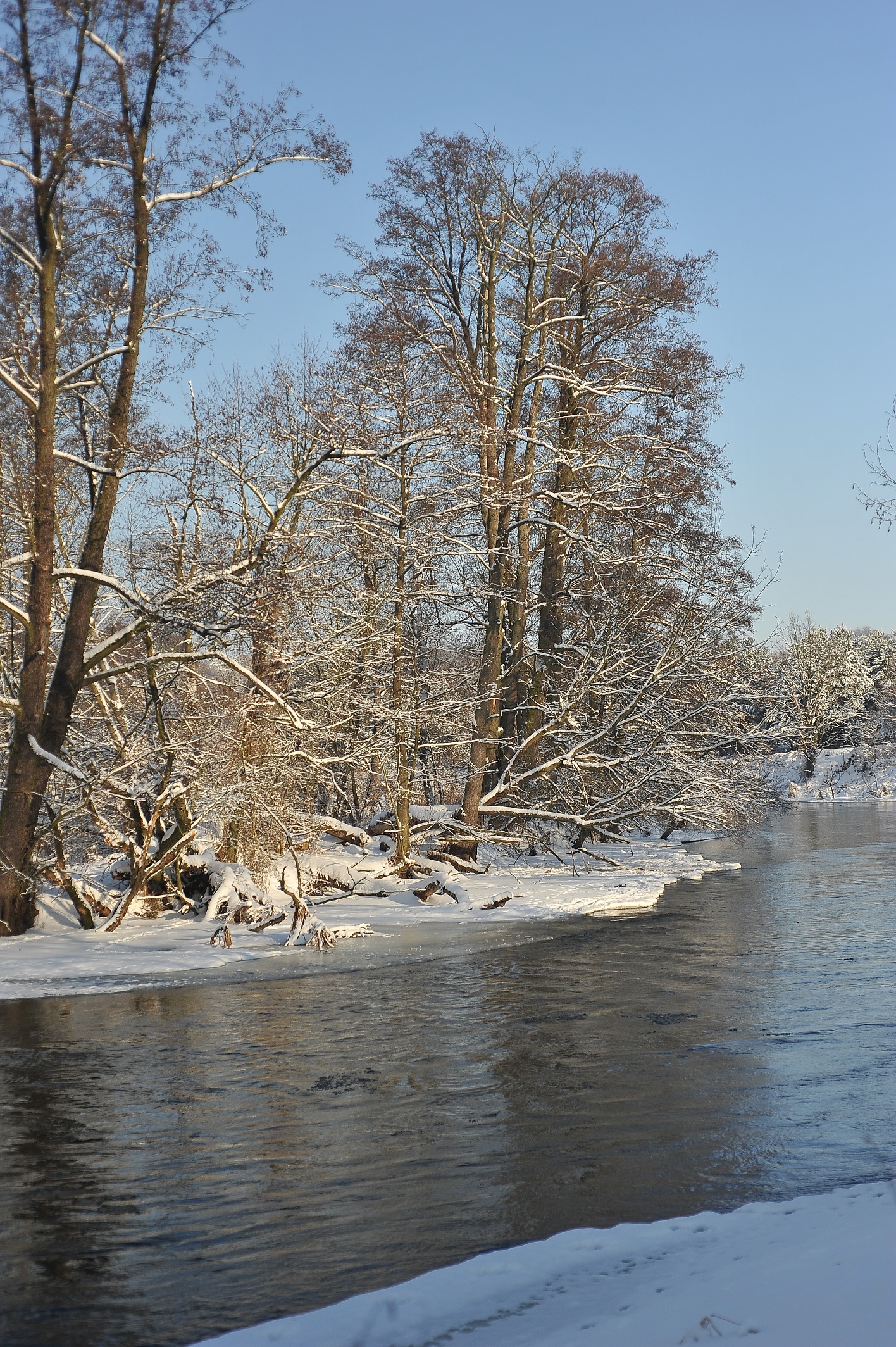 Nie stwierdzili bezpośredniego zagrożenia, rzeka jest nadal pokryta lodem, nie występuje kra