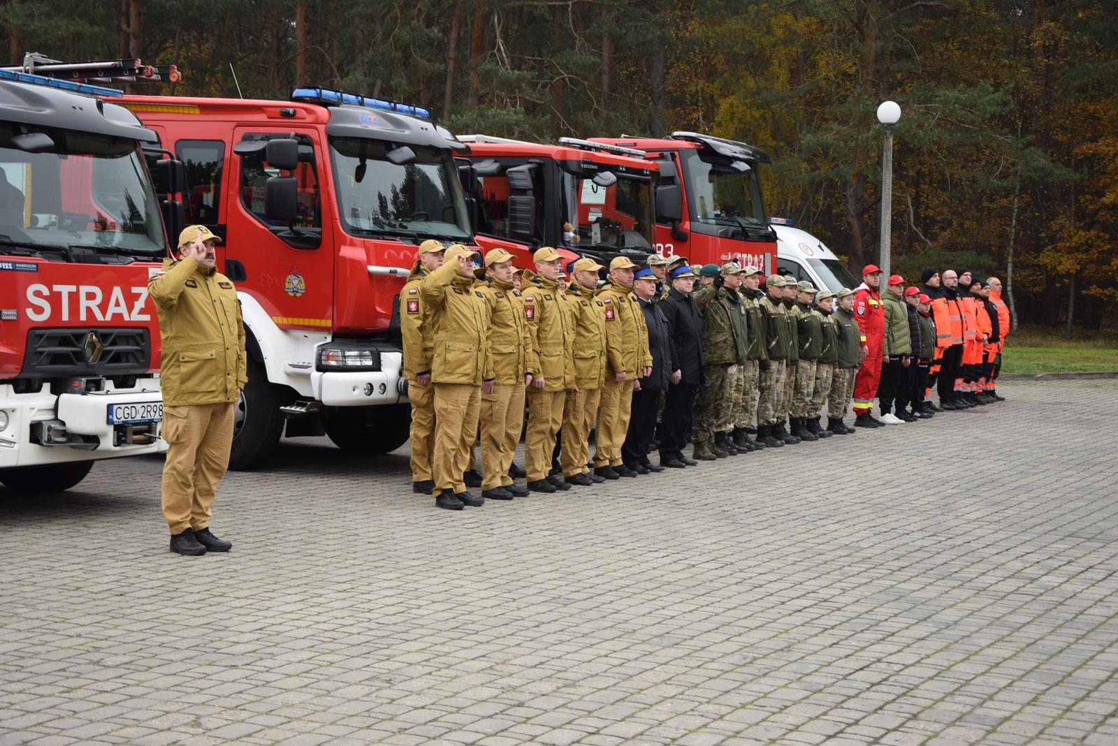 W ramach obchodów Narodowego Święta Niepodległości 11 listopada 2024 r. przed Komendą Powiatową Państwowej Straży Pożarnej w Golubiu-Dobrzyniu o godzinie 12:00 odbyła się uroczysta zbiórka. Uczestniczyli w niej przedstawiciele samorządów na czele ze Starostą Golubsko-Dobrzyńskim Panem Jackiem Foksińskim, przedstawiciele służb zapewniających bezpieczeństwo na terenie Powiatu Golubsko-Dobrzyńskiego, przedstawiciele jednostek podległych samorządom, uczniowie klasy mundurowej przy Zespole Szkół nr 1 im. Anny Wazówny w Golubiu-Dobrzyniu Militarni-Wazówna, przedstawiciele MDP, druhowie OSP, mieszkańcy Golubia-Dobrzynia, Funkcjonariusze, strażacy zmiany służbowej JRG oraz pracownicy cywilni Komendy Powiatowej.