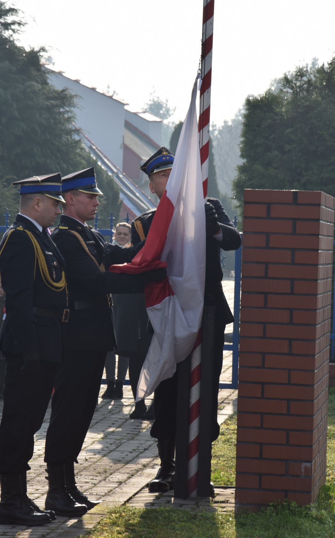 Po złożeniu meldunku przez st. kpt. Łukasza Buczka Komendantowi Powiatowemu PSP w Golubiu-Dobrzyniu mł. bryg. Witoldowi Juszczakowi, Komendant wygłosił przemowę oraz nastąpiło uroczyste podniesienia flagi państwowej na maszt i odśpiewanie Hymnu Państwowego.
