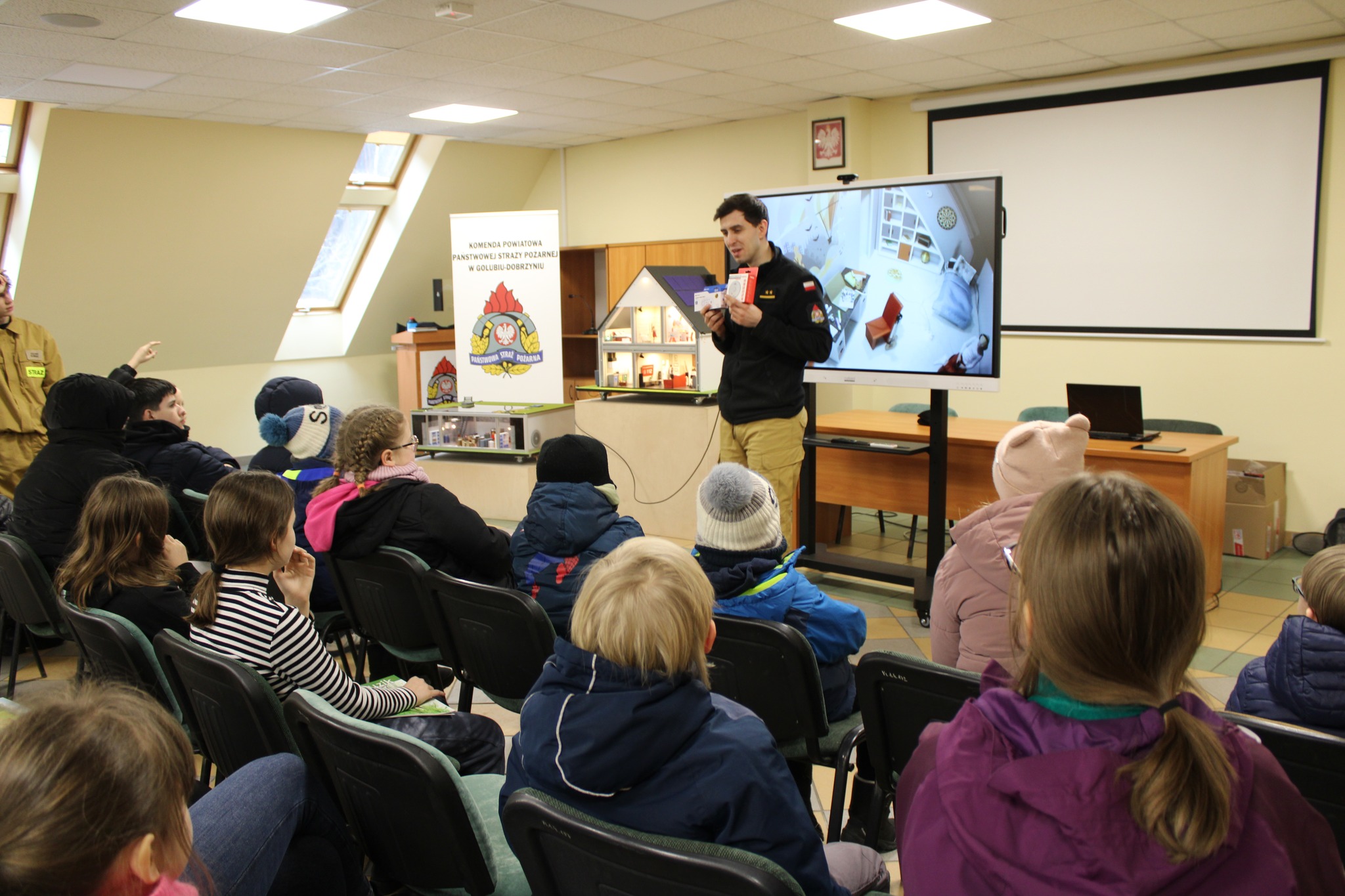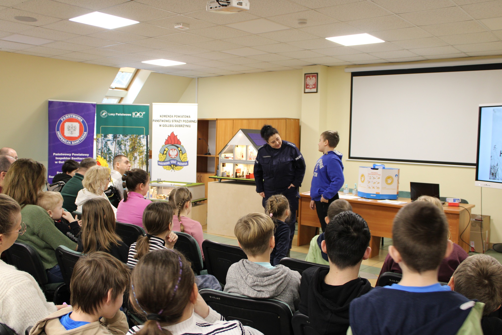 Nie zabrakło również aktywności praktycznych – uczestnicy brali udział w quizach, a najlepiej radzący sobie otrzymali czujki dymu i czadu (urządzenia zostały zakupione przez Ministerstwo Spraw Wewnętrznych i Administracji w ramach Programu Ochrony Ludności i Obrony Cywilnej), aby zwiększyć bezpieczeństwo w swoich domach.