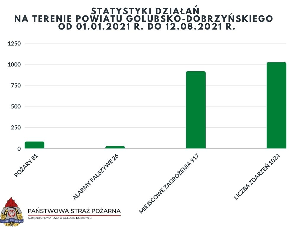 - Podsumowując działania ratowniczo-gaśnicze Komendy Powiatowej PSP w Golubiu-Dobrzyniu w minionym tygodniu (tj. od 06.08.2021 r. do 02.08.2021 r.) informujemy, iż zanotowaliśmy ogółem 22 zdarzenia z czego: 21 to miejscowe zagrożenia a 1 to alarm fałszywy.