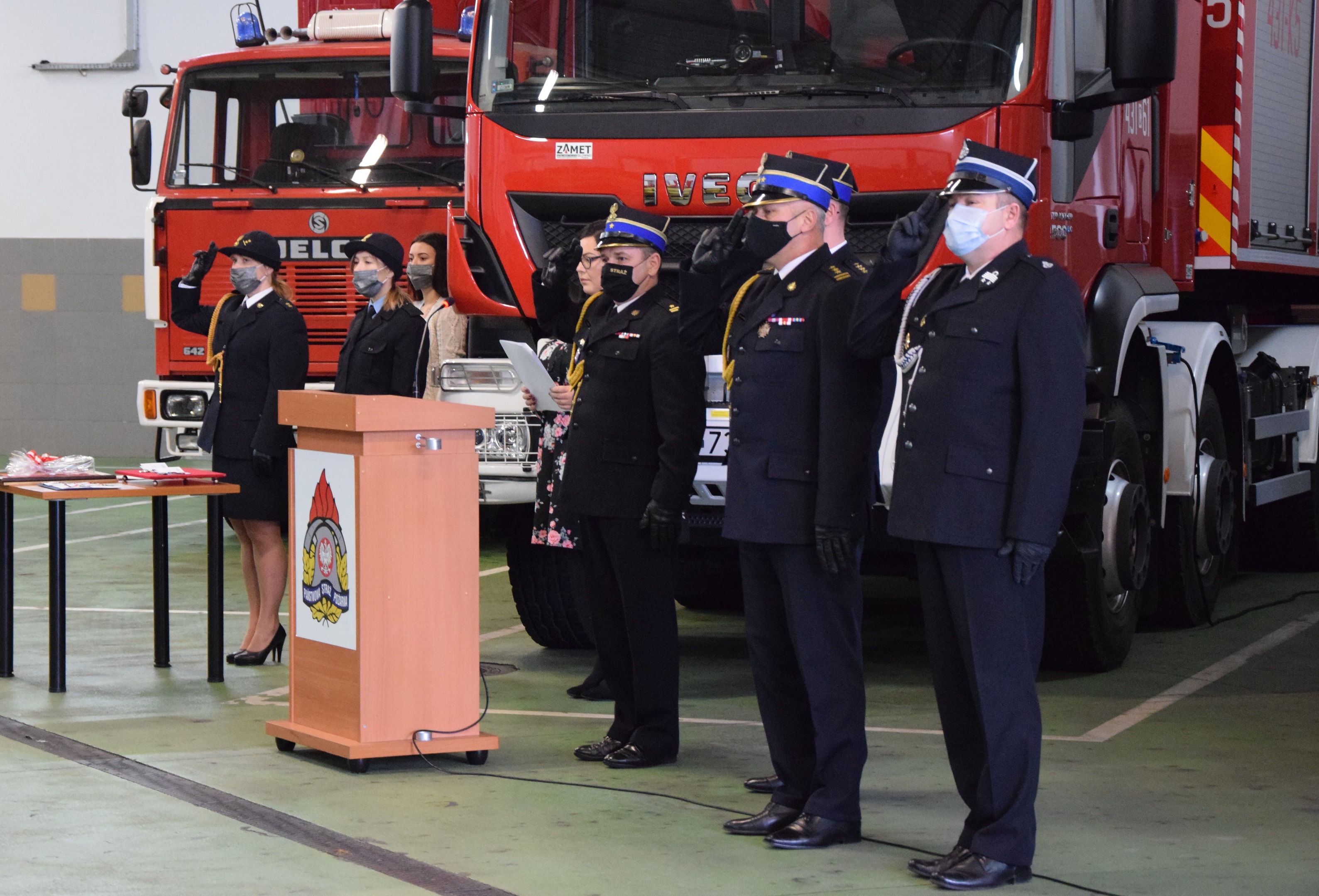 *18 listopada 2021 r. w Komendzie Powiatowej Państwowej Straży Pożarnej Golubiu-Dobrzyniu odbyła się uroczysta zbiórka z okazji Święta Niepodległości. W uroczystości uczestniczył st. bryg. Robert Wiśniewski - Zastępca Kujawsko-Pomorskiego Komendanta Wojewódzkiego PSP, mł. bryg. Witold Juszczak - Komendant Powiatowy PSP w Golubiu-Dobrzyniu, Druh Dariusz Mężykowski - Prezes Zarządu Oddziału Powiatowego ZOSP RP oraz Funkcjonariusze i pracownicy cywilni Komendy Powiatowej PSP w Golubiu-Dobrzyniu. Podczas uroczystości funkcjonariuszom wręczono odznaczenia, nominacje na wyższe stopnie służbowe oraz wyróżnienia.