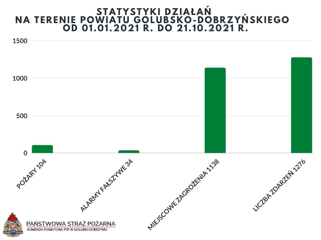 *Podsumowując działania ratowniczo-gaśnicze Komendy Powiatowej PSP w Golubiu-Dobrzyniu w minionym tygodniu (tj. od 15.10.2021 r. do 21.10.2021 r.) informujemy, iż zanotowaliśmy ogółem 50 zdarzeń z czego: 1 z nich stanowił pożar a 49 to miejscowe zagrożenia.