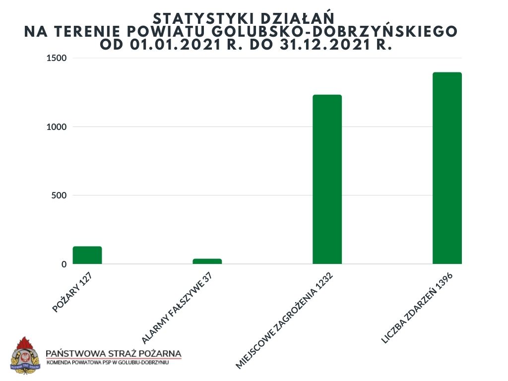 *Podsumowując działania ratowniczo-gaśnicze Komendy Powiatowej PSP w Golubiu-Dobrzyniu od 24.12.2021 r. do 31.12.2021 r. informujemy, iż odnotowaliśmy ogółem 12 zdarzeń z czego: 6 z nich stanowiły pożary, 5 to miejscowe zagrożenia a 1 to alarm fałszywy.