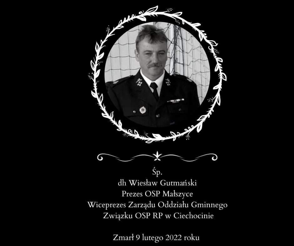 Komendant Powiatowy PSP w Golubiu-Dobrzyniu wraz z funkcjonariuszami i pracownikami cywilnymi składają głębokie wyrazy współczucia Rodzinie zmarłego oraz druhom OSP Małszyce.
