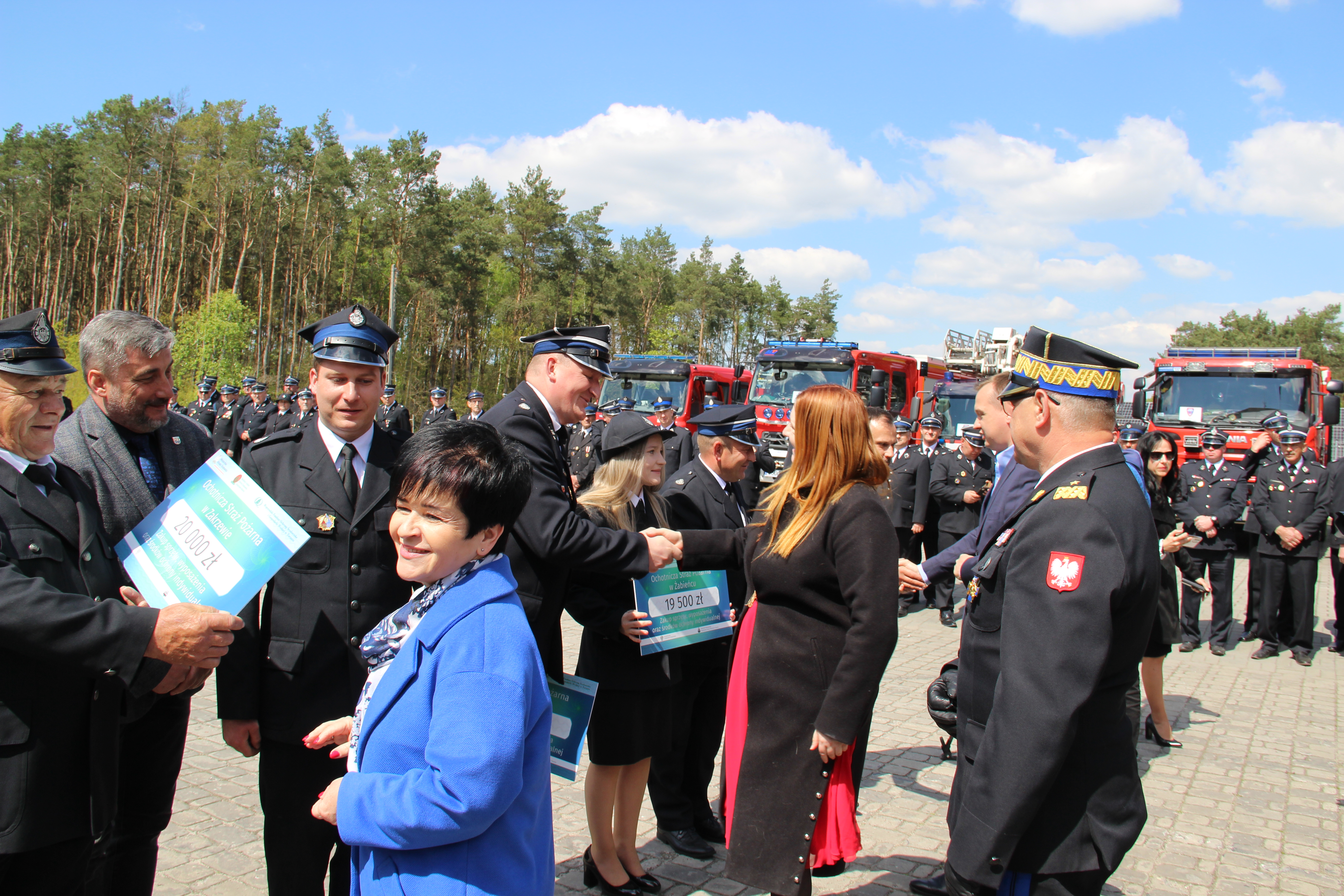 8 maja br. w Golubiu Dobrzyniu, na placu przed strażnicą KP PSP, druhowie z jednostek OSP odebrali vouchery na dofinansowanie jednostek OSP, w ramach Programów „Mały Strażak” i „Eko-Strażak”, finansowanych ze środków Wojewódzkiego Funduszu Ochrony Środowiska i Gospodarki Wodnej.