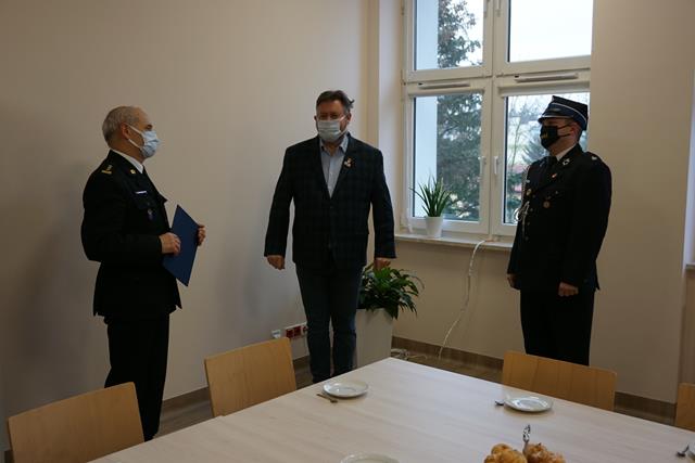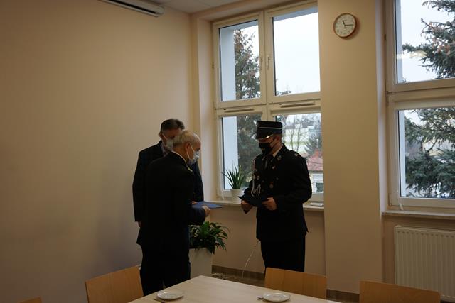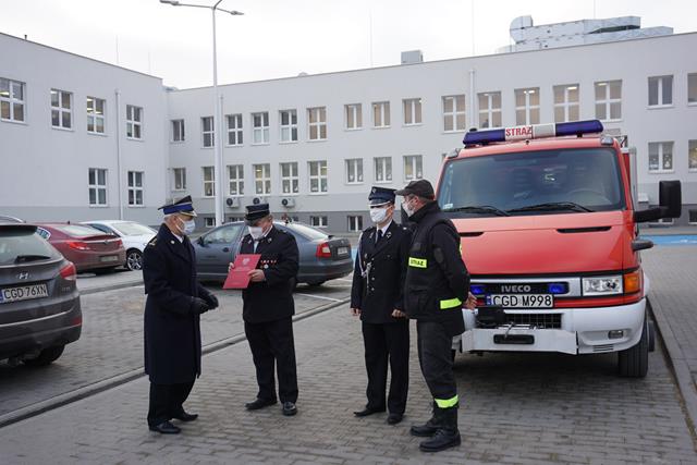 Również w tym dniu Komendant Powiatowy w imieniu Kujawsko-Pomorskiego Komendanta Wojewódzkiego Państwowej Straży Pożarnej w Toruniu st. bryg. Jacka Kaczmarka serdecznie podziękował druhom OSP w Kowalewie Pomorskim za pełne poświęcenie i zaangażowanie oraz postawę jaką wykazali podczas gaszenia pożaru składowiska opon w Raciniewie, w powiecie chełmińskim, do którego doszło w dniu 13 listopada 2020 r. Wsparcie w postaci zaangażowania sił jednostek Ochotniczych Straży Pożarnych z naszego powiatu, w walce z tym żywiołem przyczyniło się do opanowania i ugaszenia tego pożaru. Podziękowanie odebrał Naczelnik OSP Kowalewo Pomorskie druh Przemysław Rudewicz i Burmistrz Miasta Kowalewo Pomorskie Pan Jacek Żurawski.
