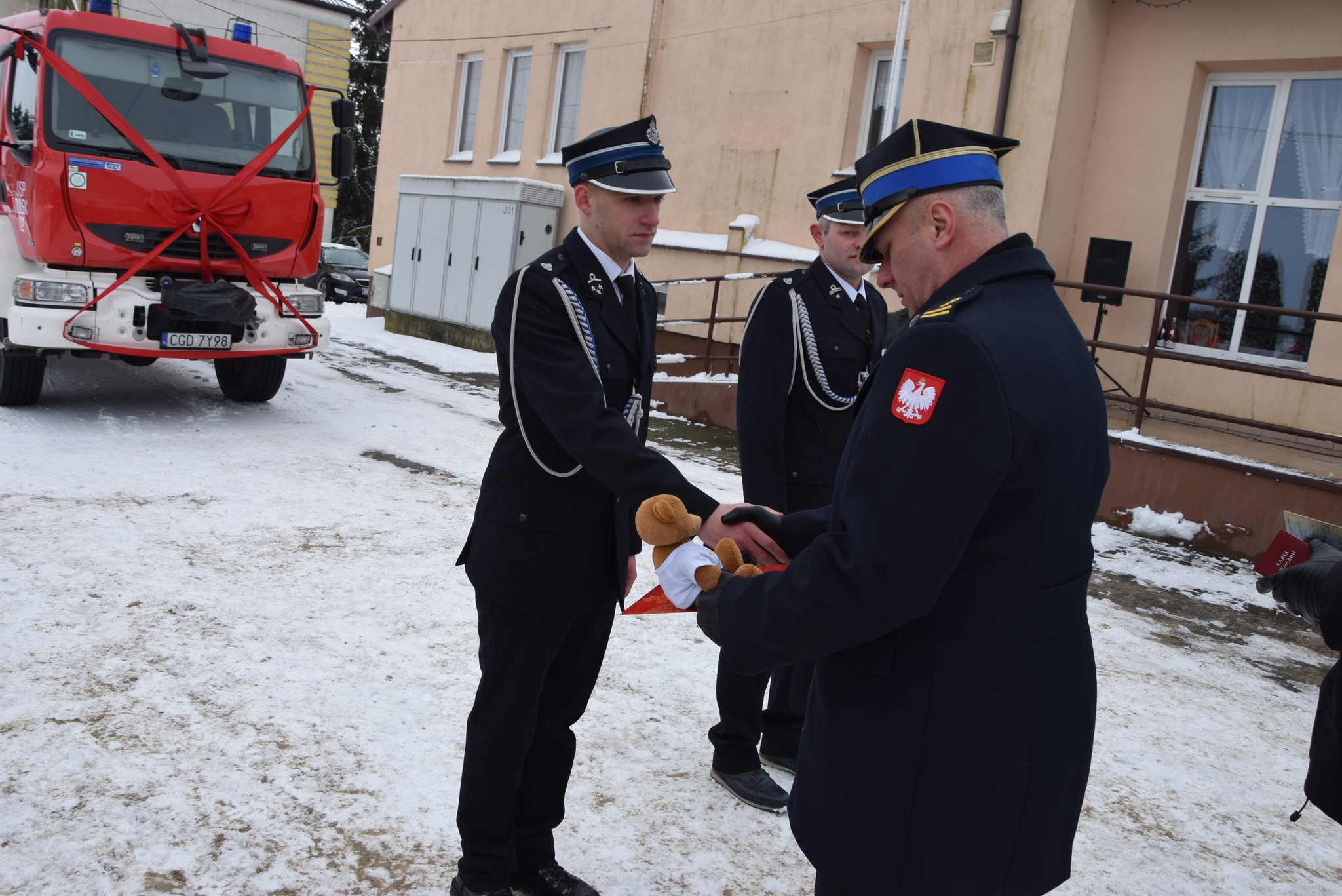 Pojazd został poświęcony przez księży Wojciecha Zaleśkiewicza i Jarosława Kowalczyka. Przekazania kluczyków oraz dowodu rejestracyjnego dokonali: st. bryg. Robert Wiśniewski – Zastępca Kujawsko-Pomorskiego Komendanta Wojewódzkiego PSP, mł. bryg. Witold Juszczak – Komendant Powiatowy PSP w Golubiu-Dobrzyniu oraz druh Jarosław Herbowski – Prezes Zarządu Oddziału Wojewódzkiego Związku OSP RP województwa kujawsko-pomorskiego.