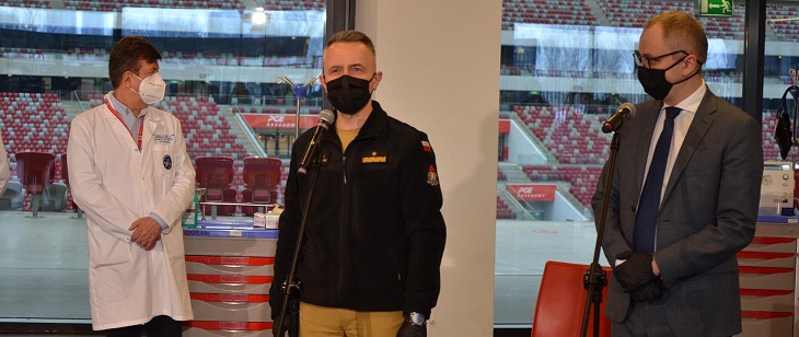 24 marca 2021 r. o godzinie 14.00 w szpitalu tymczasowym na PGE Narodowym rozpoczął się proces szczepień przeciw COVID-19 dla grupy 1C „służby mundurowe".