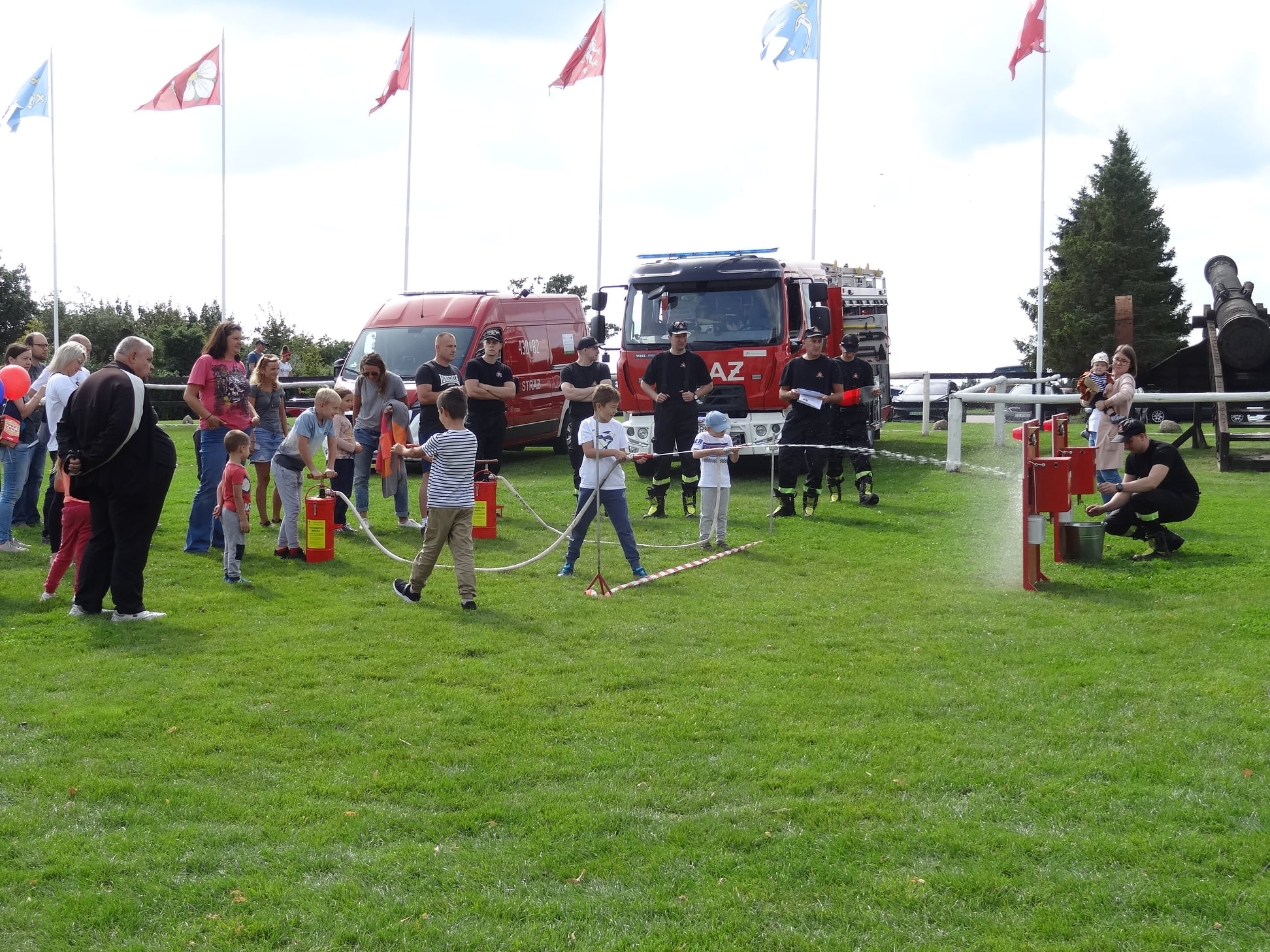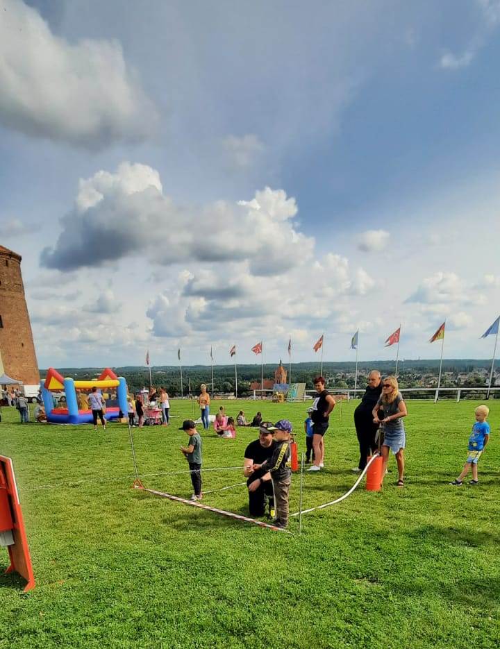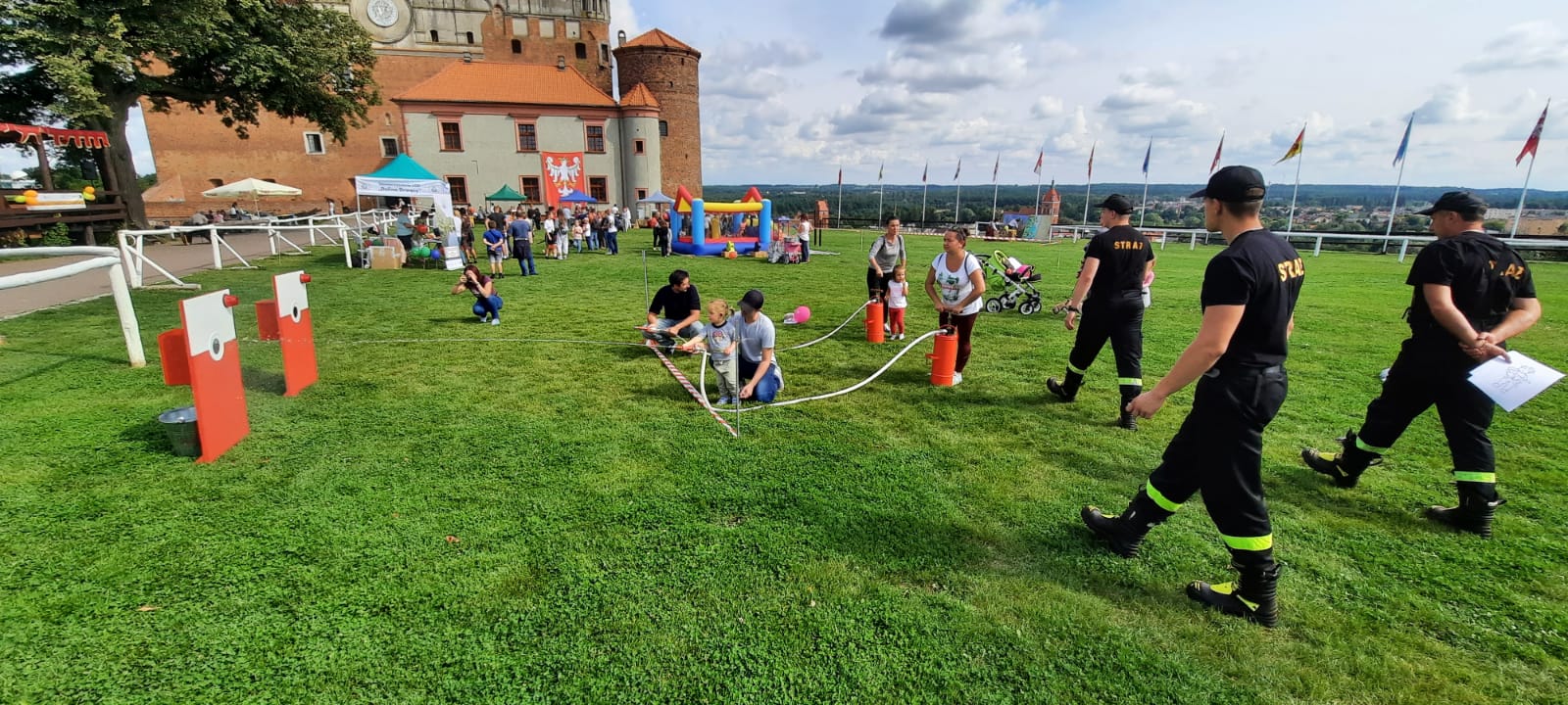 28 sierpnia 2021 r. w ramach działań z zakresu prewencji społecznej Funkcjonariusze z Komendy Powiatowej PSP w Golubiu-Dobrzyniu uczestniczyli w Pikniku na Zamku Golubskim organizowanym przez LGD „Dolina Drwęcy”. Strażacy przeprowadzili pogadankę, podczas której wszyscy obecni zostali zapoznani ze specyfiką zawodu strażaka i zaprezentowano im sprzęt wykorzystywany podczas działań ratowniczo-gaśniczych. Ponadto przypomniano podstawowe zasady bezpiecznego spędzania wolnego czasu oraz promowano akcję #SzczepimySię z OSP. Dzieci podczas pikniku próbowały swoich sił przy obsłudze hydronetek i ćwiczyły precyzyjne nalewanie wody do wyznaczonego celu.