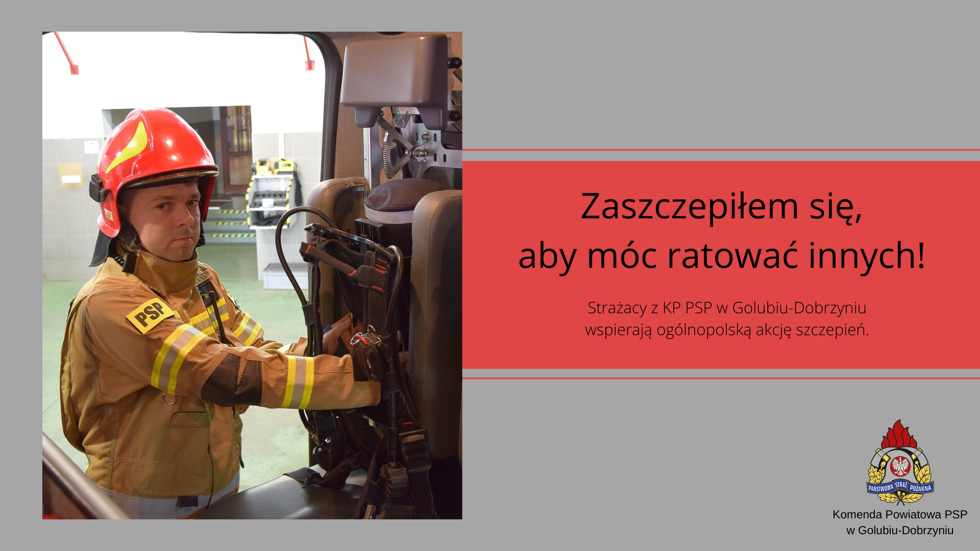 Strażacy z Komendy Powiatowej Państwowej Straży Pożarnej w Golubiu-Dobrzyniu wspierają ogólnopolską akcję szczepień przeciw Covid-19 05.08.2021 Zdjęcia (1) Pokaż zdjęcie 1 z galerii.