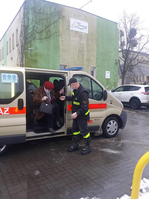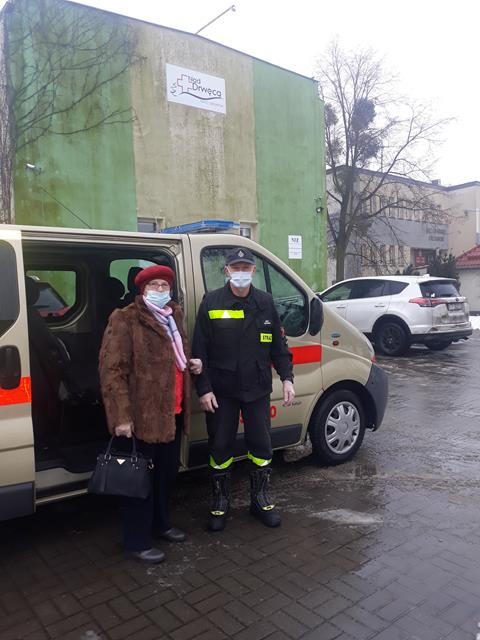 W ramach ogólnopolskiej akcji szczepień przeciw COVID-19 strażacy pomagają dotrzeć do punktów szczepień osobom powyżej 70 roku życia które nie mogą tam dojechać we własnym zakresie.