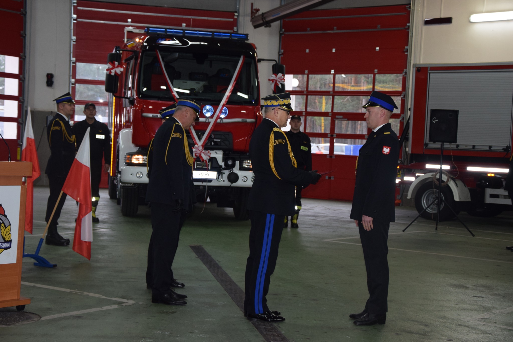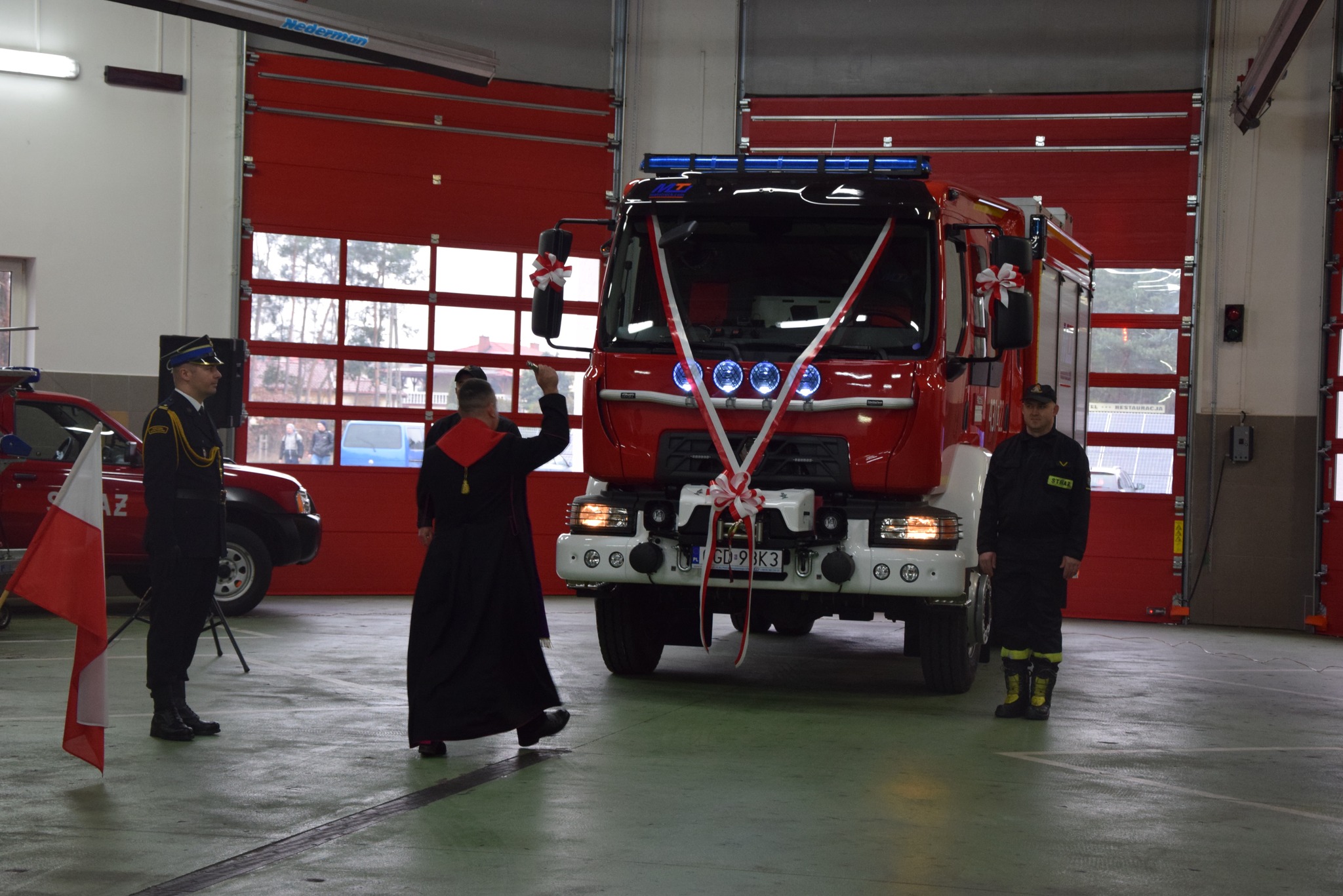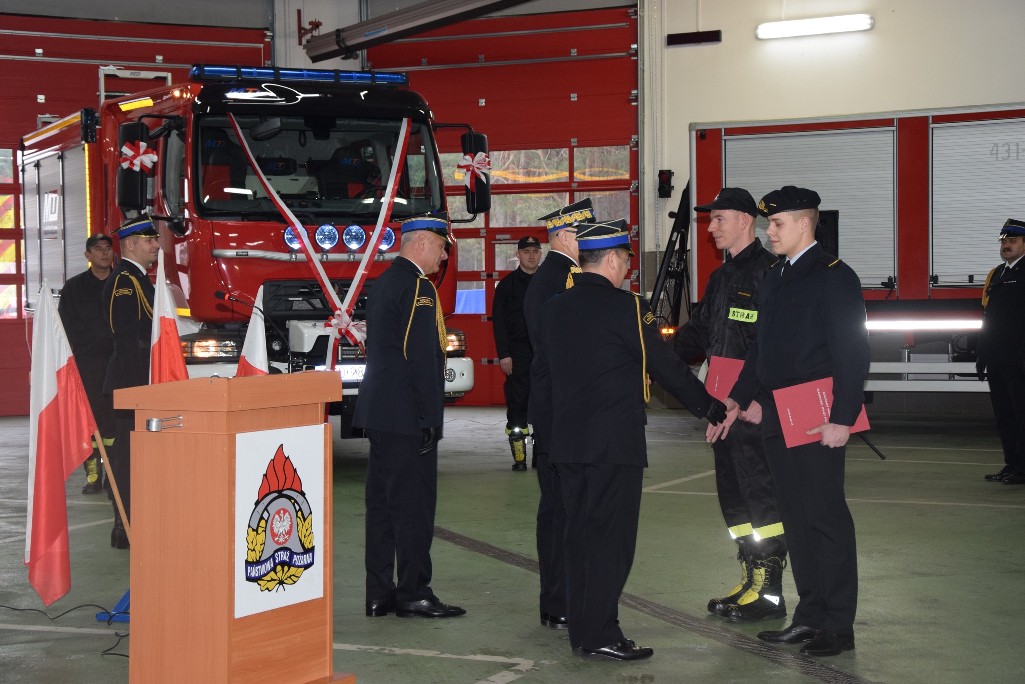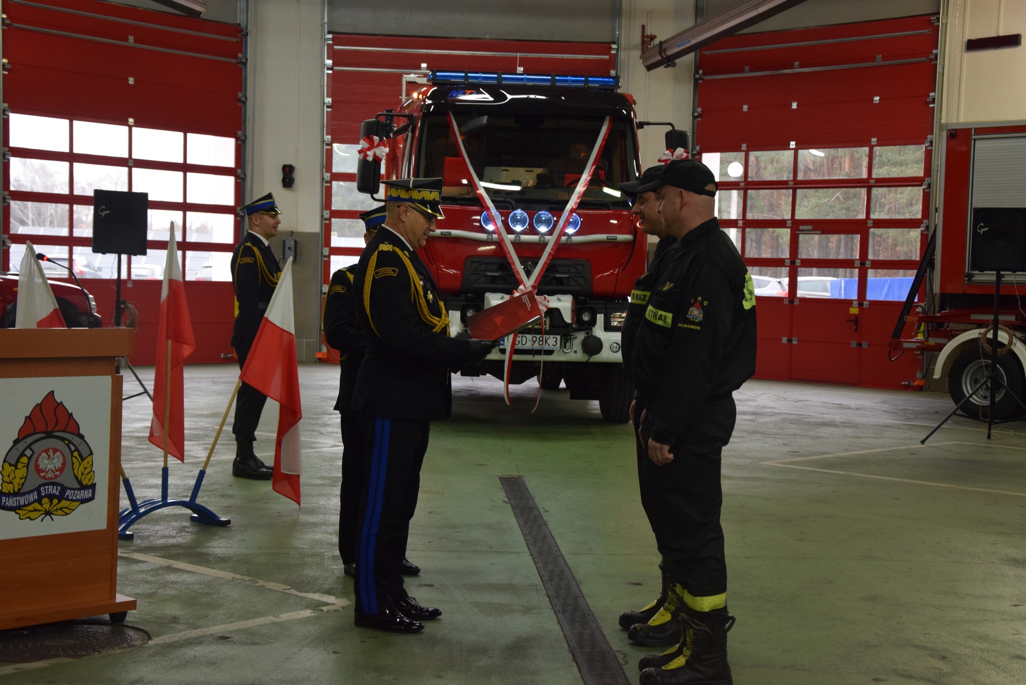 Po wręczeniu awansów został przekazany i poświęcony przez kapelana kujawsko-pomorskich strażaków ks. Kanonika Mariusza Stasiaka średni samochód ratowniczo-gaśniczy GBA 2,6/16 na podwoziu Renault, który wyposażony jest w autopompę, zbiornik na wodę i środek pianotwórczy, działko wodno-pianowe, linie szybkiego natarcia, zraszacze oraz system piany sprężonej CAFS, pneumatyczny maszt oświetleniowy i wyciągarkę elektryczną.