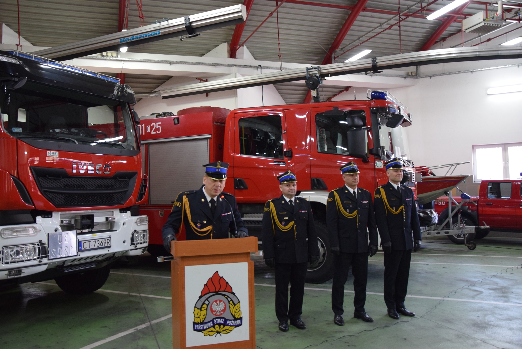 W uroczystości uczestniczyli: st. bryg. Robert Wiśniewski – Zastępca Kujawsko – Pomorskiego Komendanta Wojewódzkiego Państwowej Straży Pożarnej oraz funkcjonariusze i pracownicy cywilni Komendy Powiatowej PSP w Golubiu-Dobrzyniu.