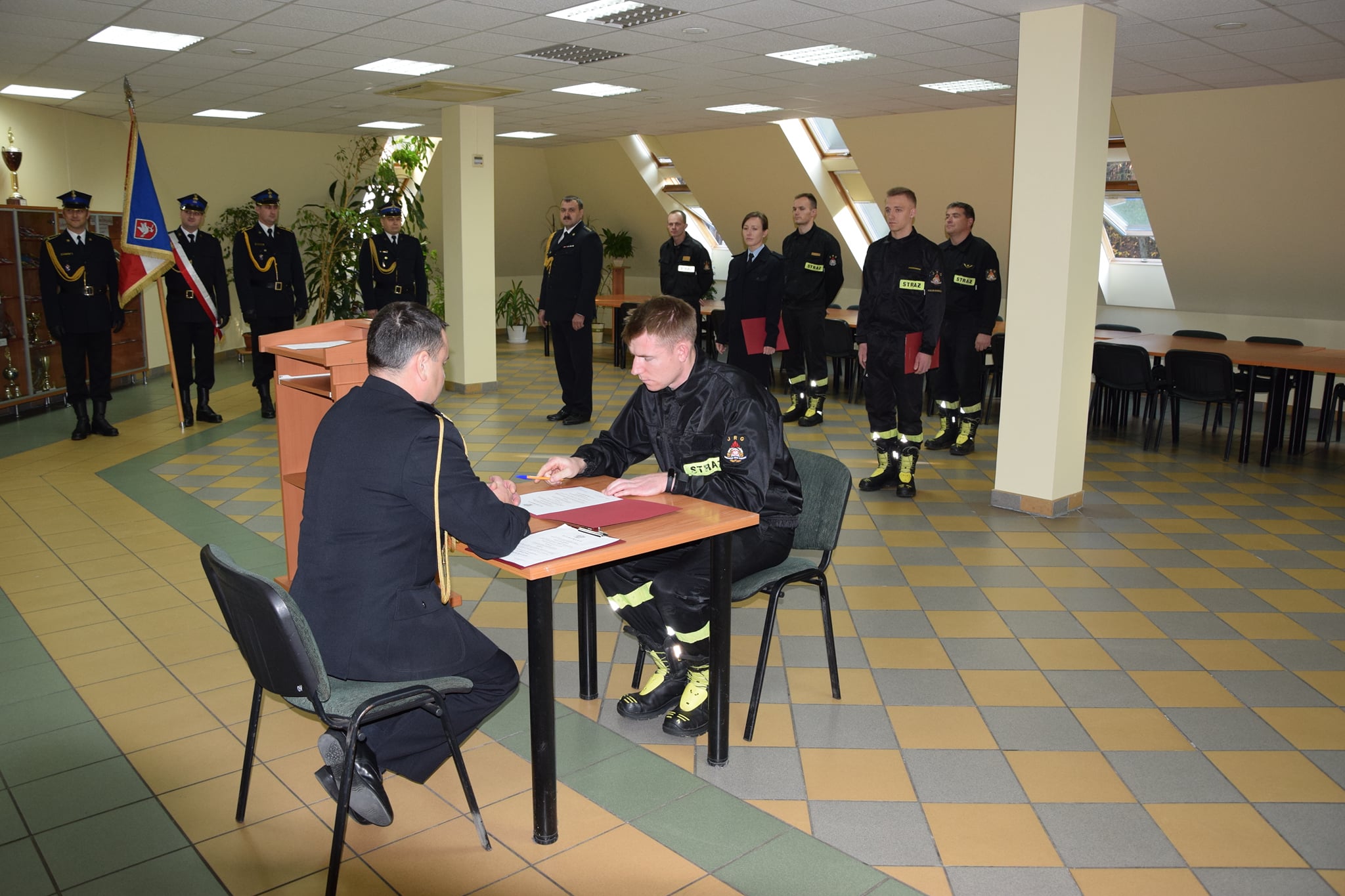Komendant Powiatowy PSP w Golubiu-Dobrzyniu mł. bryg. Witold Juszczak przyjął ślubowanie strażaka Kamila Balewskiego. Ten bardzo ważny i doniosły moment w życiu każdego strażaka został przypieczętowany złożeniem podpisu pod aktem ślubowania.