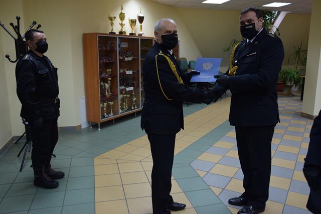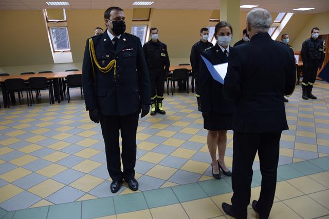Na uroczystej zbiórce Komendant Powiatowy st. bryg. Paweł Warlikowski w imieniu Kujawsko-Pomorskiego Komendanta st. bryg. Jacka Kaczmarka wręczył wyższe stopnie oficerskie.