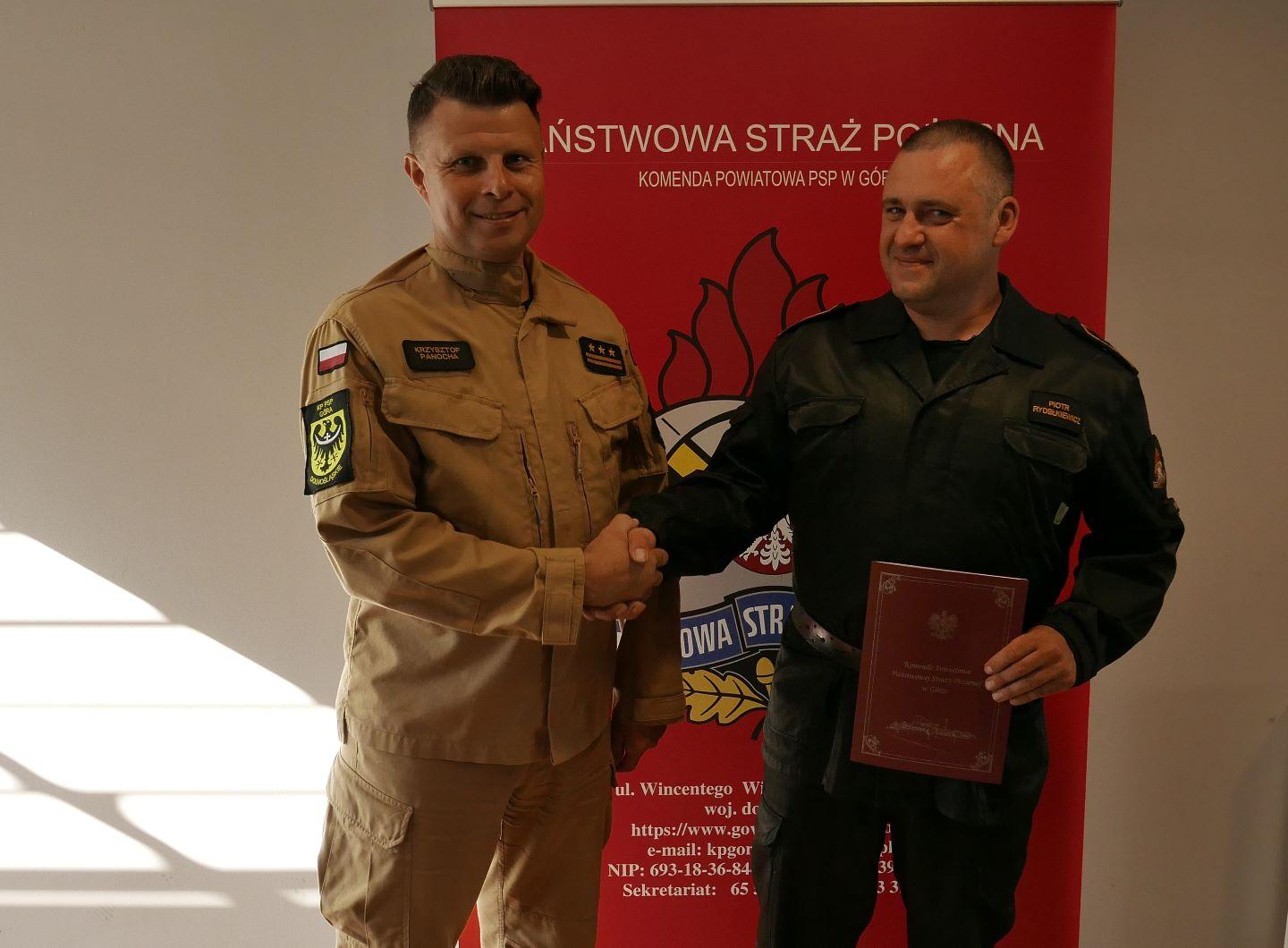 W dniu 26 czerwca 2024 r. st. bryg. Krzysztof Panocha – Komendant Powiatowy PSP w Górze wręczył Piotrowi list gratulacyjny z okazji jubileuszu pracy.