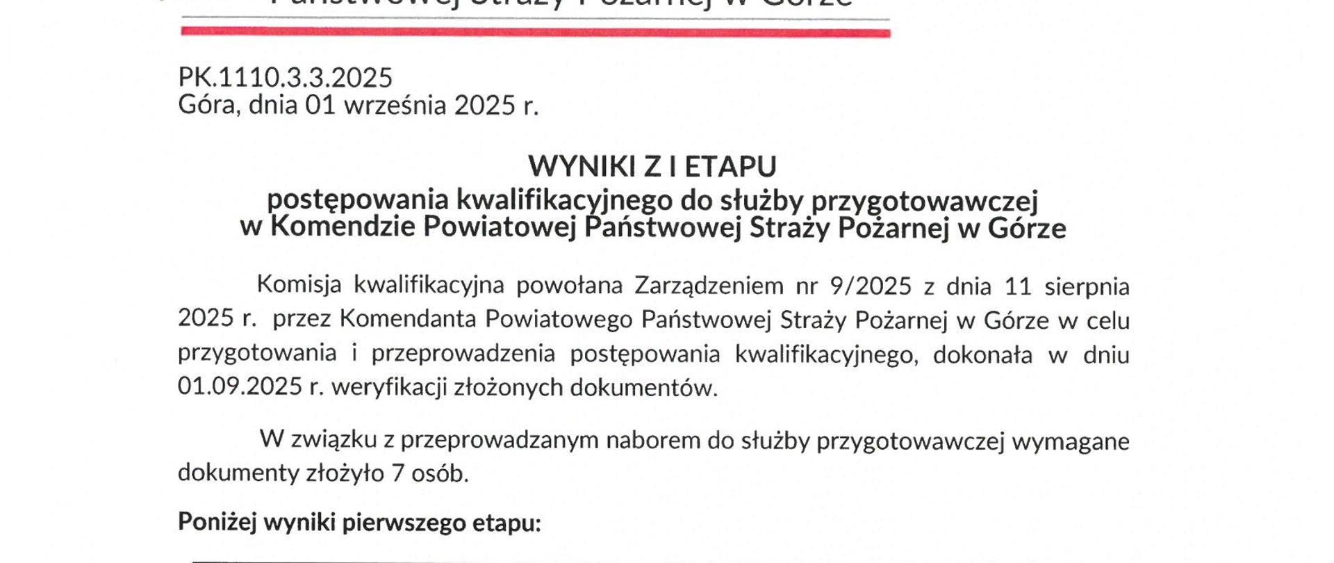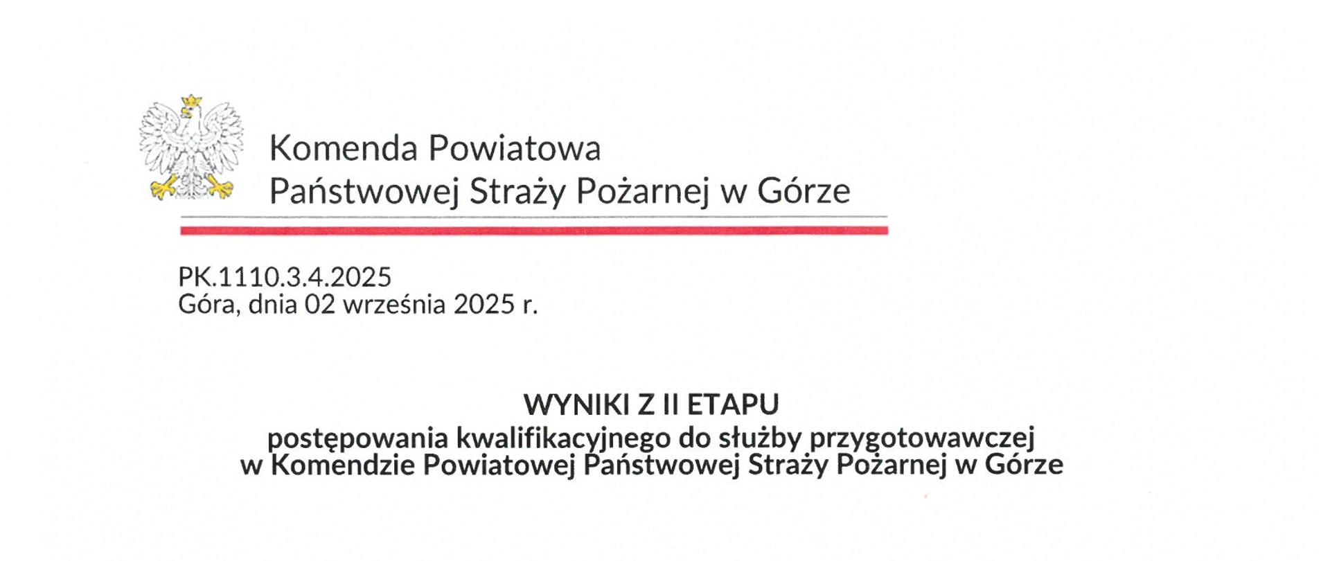 02.09.2025 GóraWyniki z II etapu naboru do służby