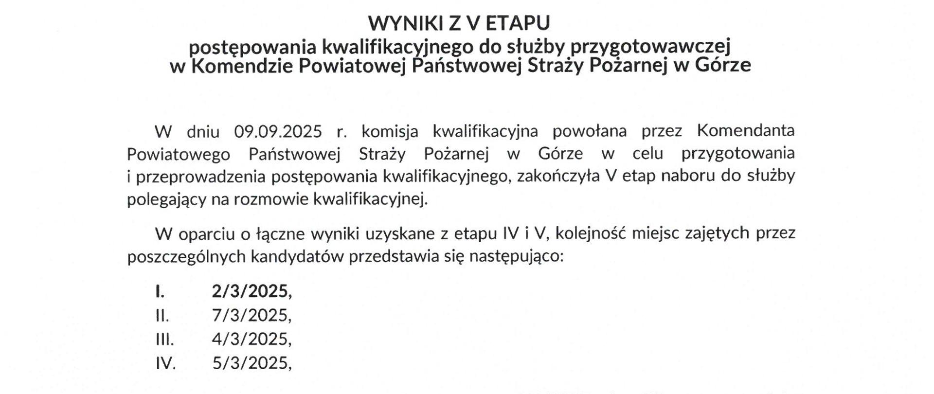 09.09.2025 GóraWyniki z V etapu naboru do służby