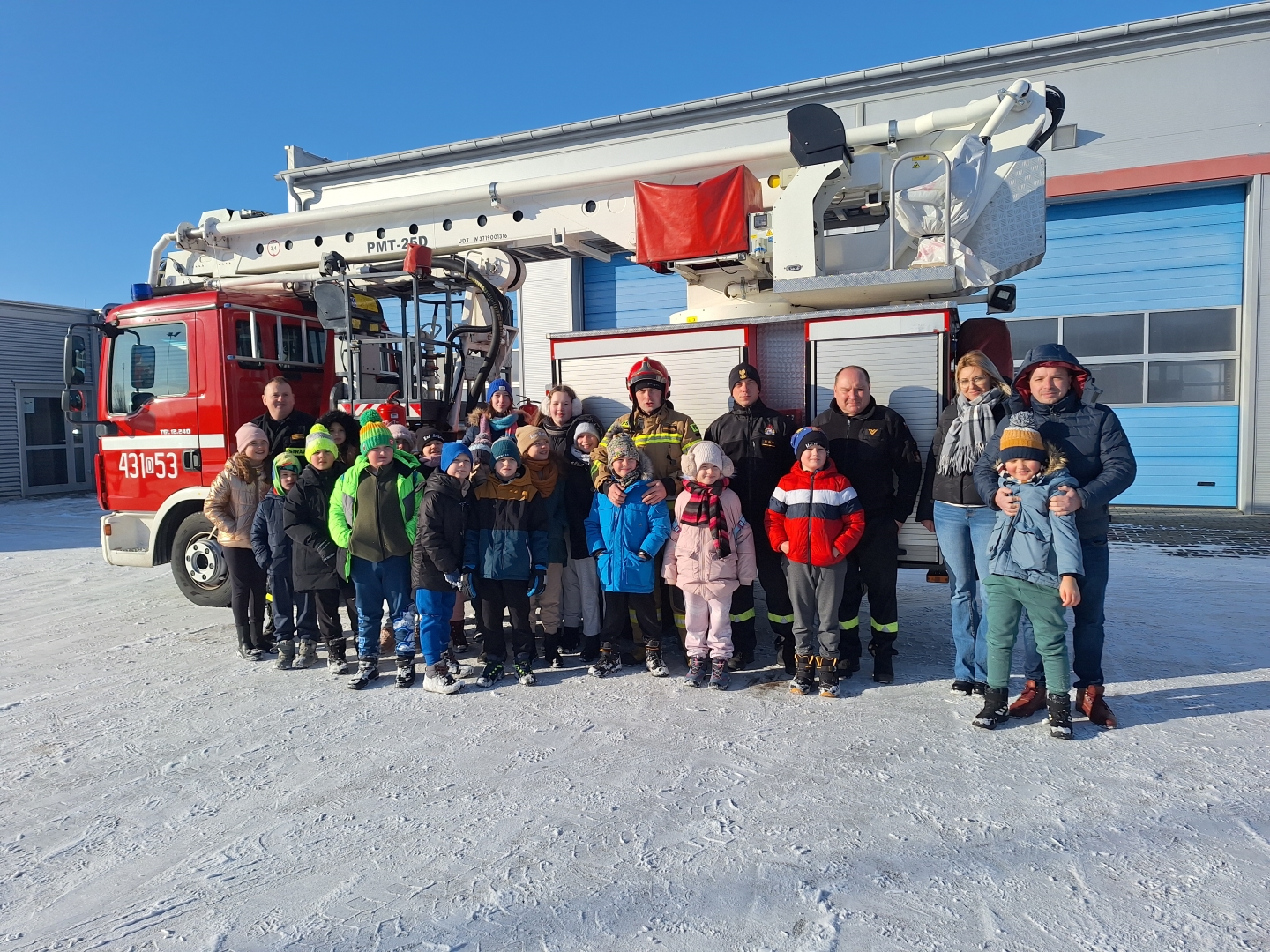 W dniu 19 stycznia 2024 r. w ramach odbywających się półkolonii w Zespole Placówek Kultury w Wąsoszu tut. komendę odwiedziła grupa 18 dzieci wraz z opiekunami. Podczas wizyty strażacy przybliżyli dzieciom specyfikę swojej pracy,a także przeprowadzili pokaz sprzętu ratowniczego. Dzieciom przedstawiono zasady bezpieczeństwa pożarowego w domu, na podwórku, ulicy lub na zimowisku. Omówiono tok powiadamiania służb ratowniczych o zagrożeniach. Przybliżono zasady postępowania w przypadku powstania pożaru, poruszono zagadnienia bezpieczeństwa na śniegu i lodzie oraz sposoby zachowań w przypadku załamania się pokrywy lodowej. Dziękujemy bardzo za wizytę.
