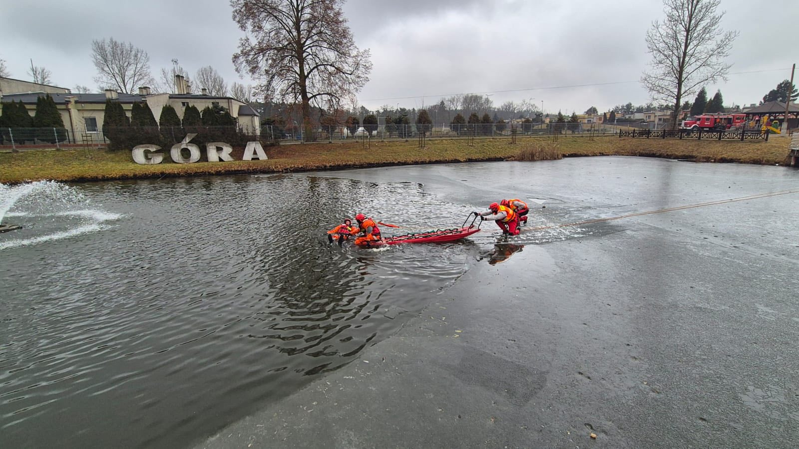 W dniach 10, 12 i 14 lutego br. każda zmiana służbowa z JRG Góra oraz jednostki OSP z Luboszyc oraz Osetna w ramach doskonalenia zawodowego odbyli ćwiczenia z zakresu ratownictwa wodno - lodowego