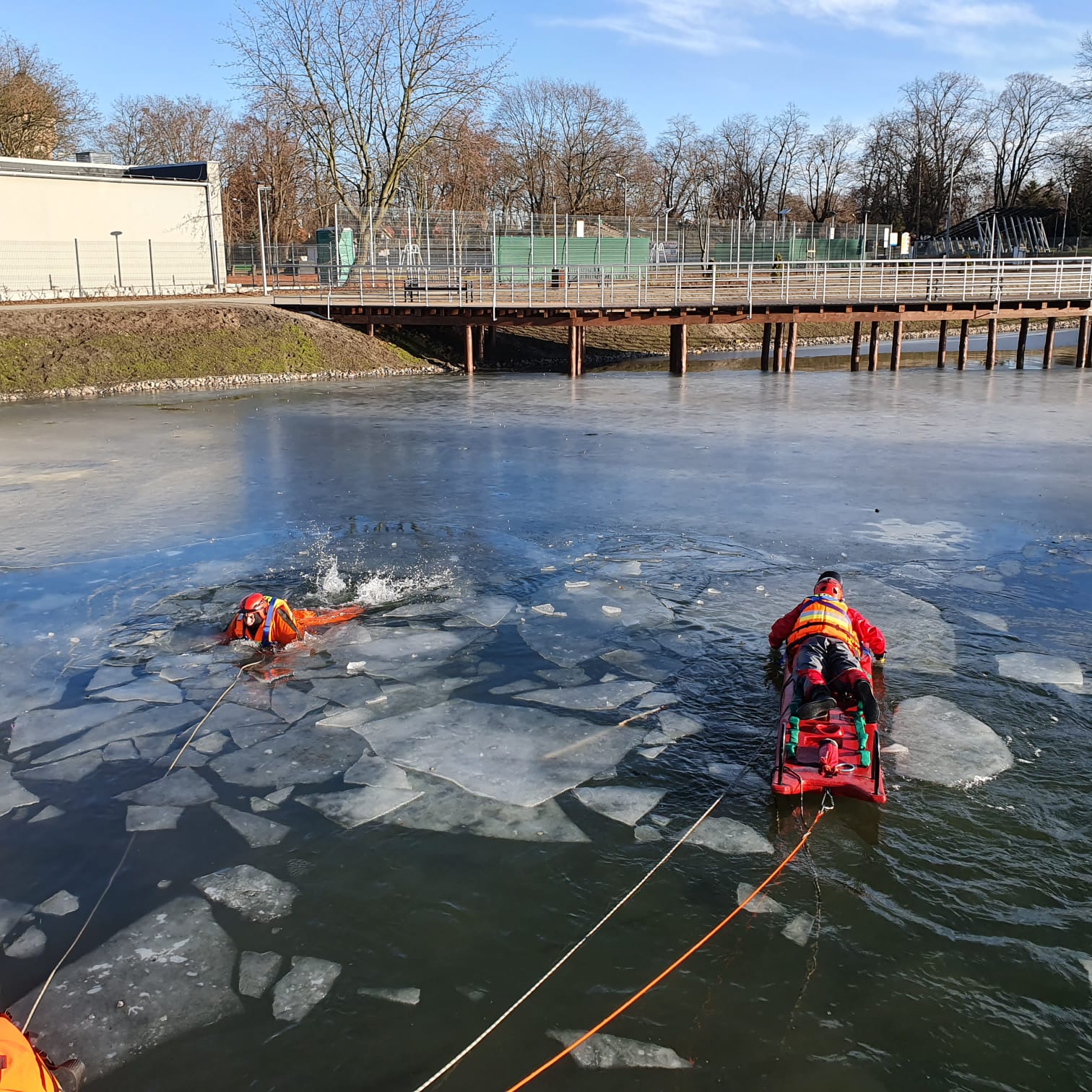 Podczas ww. manewrów funkcjonariusz doskonalili techniki podejmowanie osób ze zbiorników wodny pod którymi załamała się tafla lodowa. Działania te były prowadzone przy wykorzystaniu sań lodowych oraz kombinezonów do pracy w wodzie.