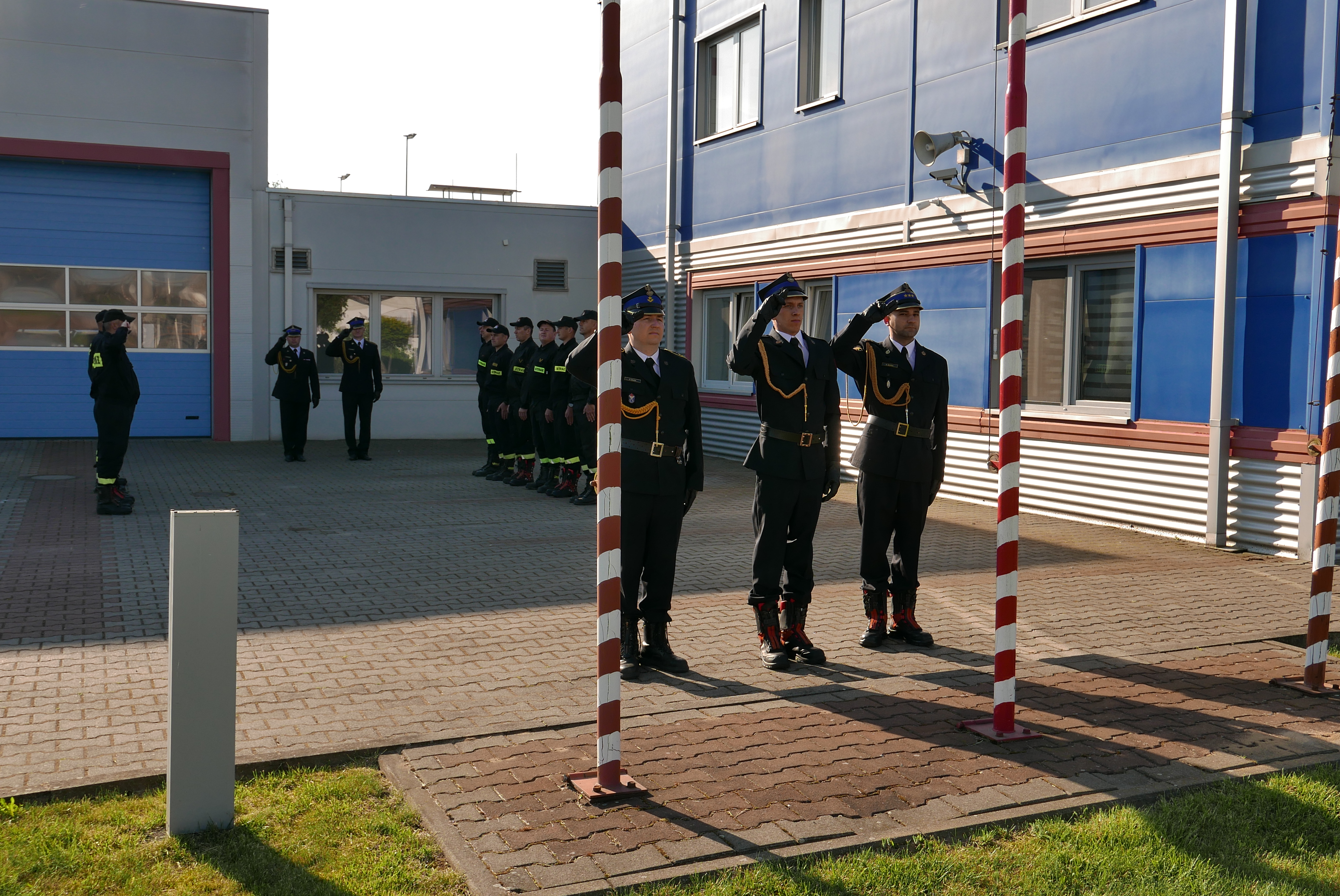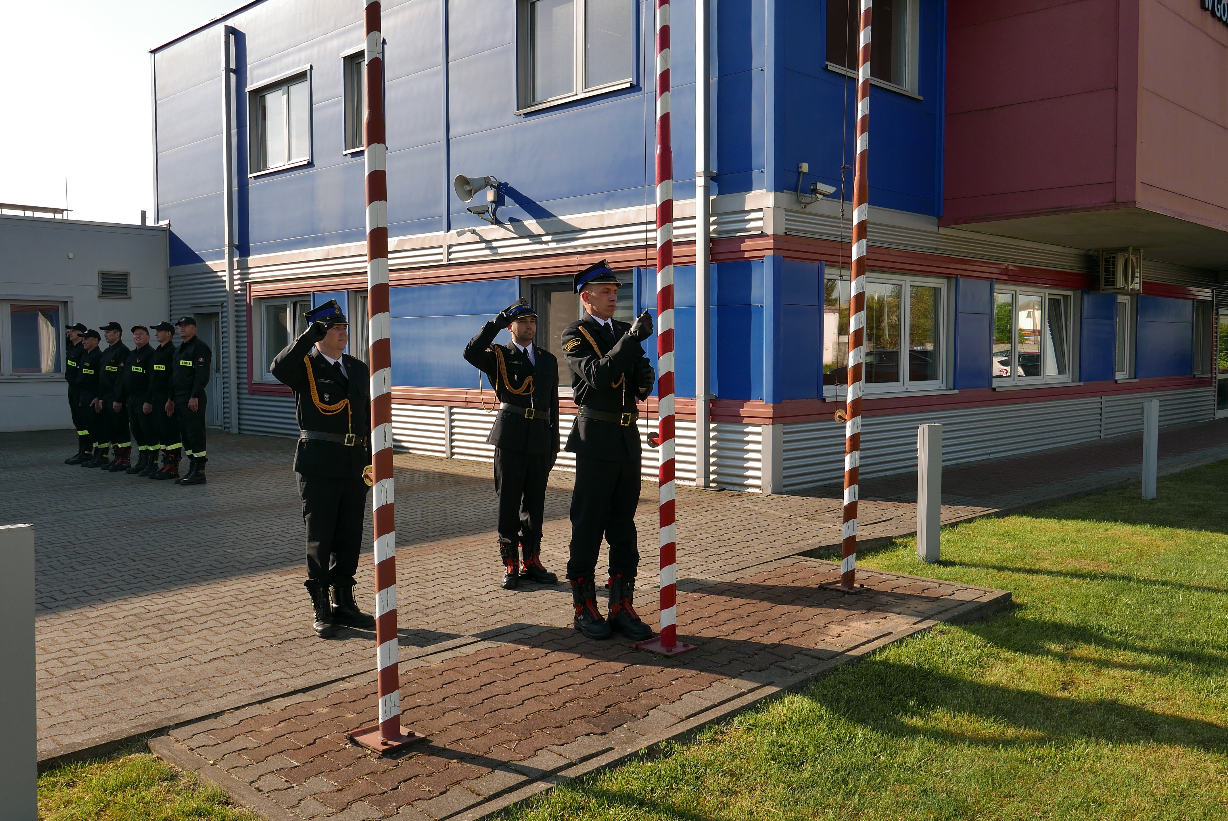 W dniu 2 maja 2025 r. obchodzimy Dzień Flagi Rzeczypospolitej Polskiej. Z tej okazji o godz. 8.00 w Komendzie Powiatowej Państwowej Straży Pożarnej w Górze odbyła się zmiana służby wraz z uroczystym podniesieniem Flagi naszego państwa.
