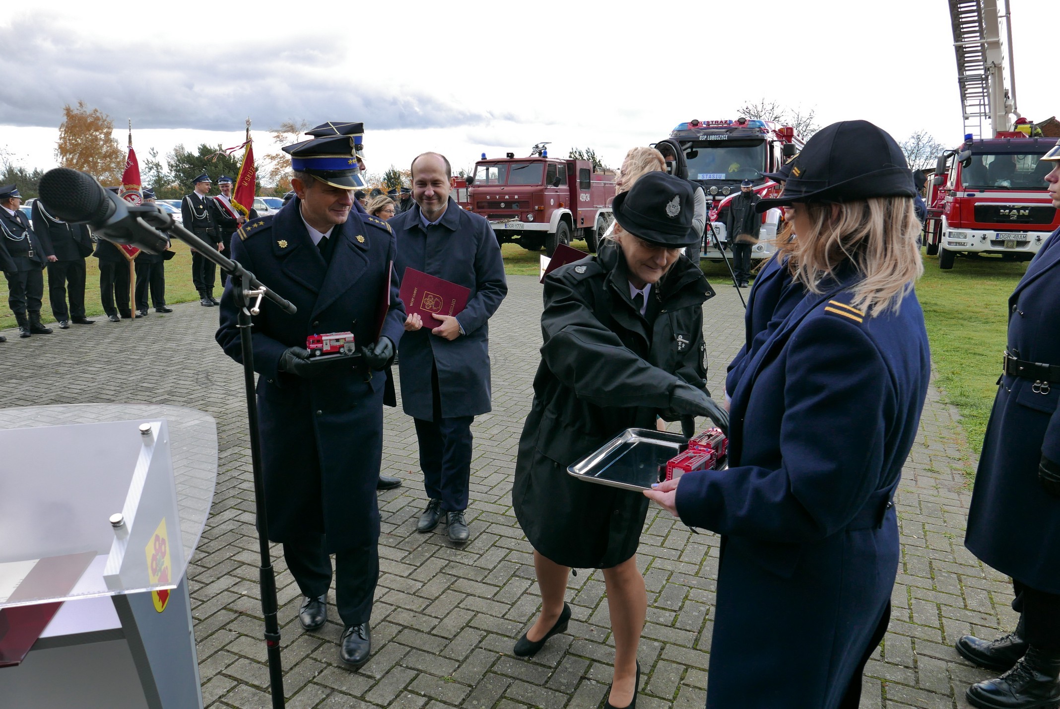 oraz gospodarz uroczystości Pani Anita Sierpowska – Wójt Gminy Jemielno, która po swoim wystąpieniu wręczyła podziękowania dla osób i instytucji, które przyczyniły się do pozyskania średniego samochodu ratowniczo-gaśniczego dla OSP Luboszyce. Podziękowania złożyła także Prezes OSP Luboszyce – dh Aneta Kruszyna, po wystąpieniu której zakończono uroczystość.
