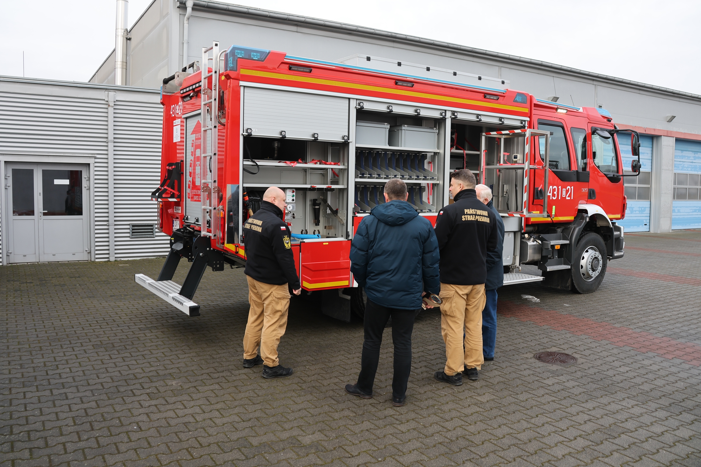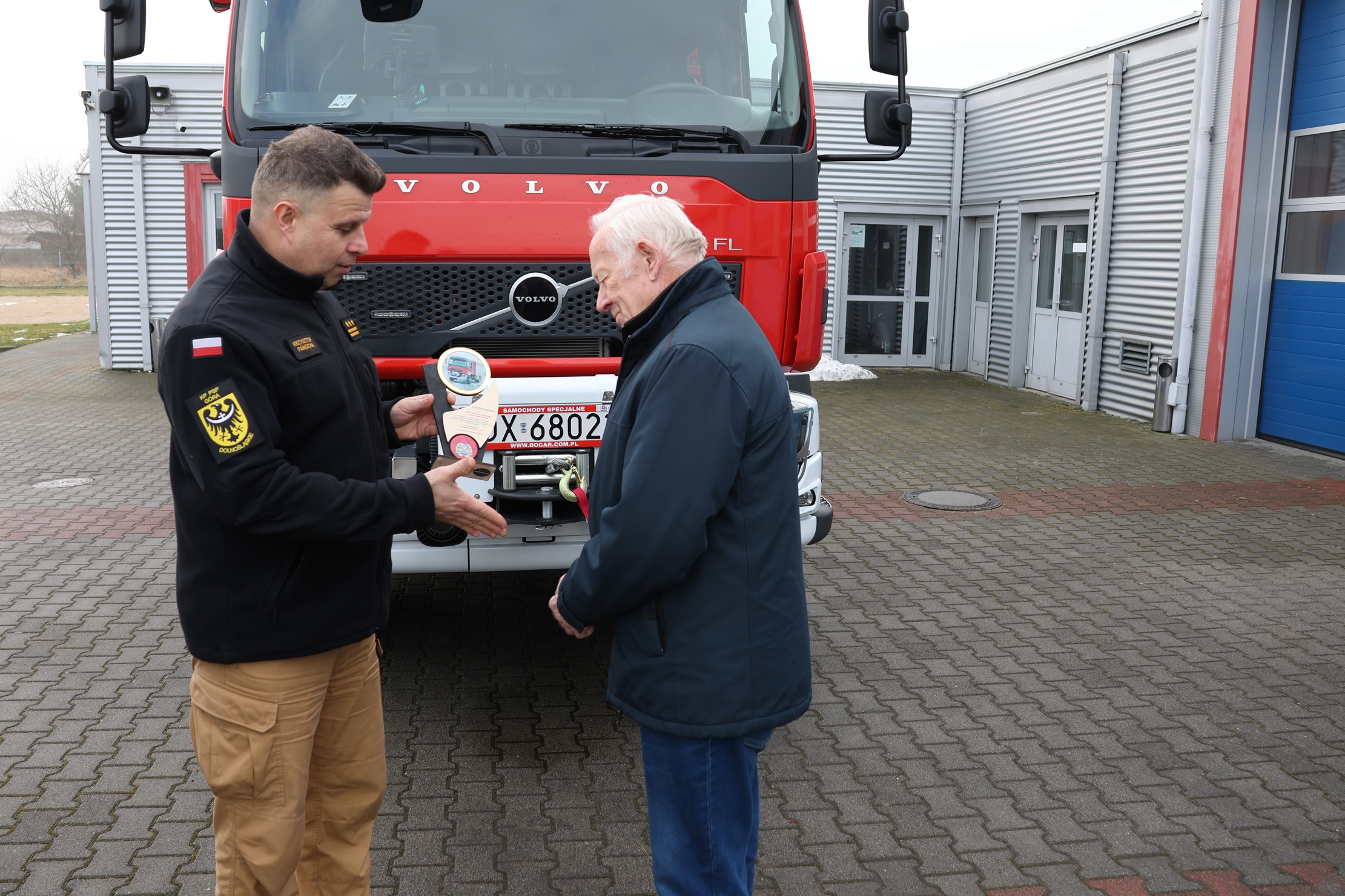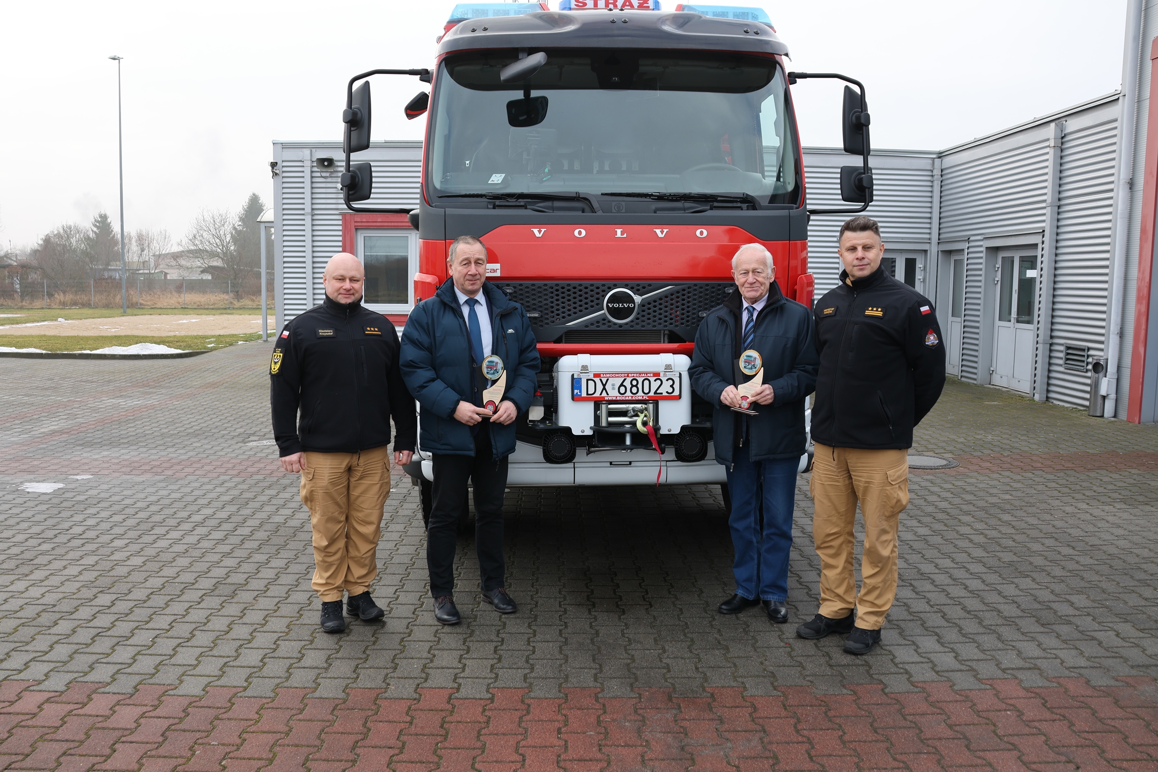 W dniu 15 stycznia 2026 r. Starosta Górowski – Pan Kazimierz Bogucki wraz z Wicestarostą Górowskim - Panem Ryszardem Wawerem odwiedzili tutejszą komendę, podczas której z rąk Komendanta Powiatowego PSP w Górze - st. bryg. mgr inż. Krzysztofa Panochy i jego zastępcy - kpt. mgr Krzysztofa Mastalerza otrzymali podziękowania za pomoc w zakupie nowego średniego samochodu ratowniczo-gaśniczego GBA 3/16 na podwoziu Volvo FLD3C z napędem 4x4.
