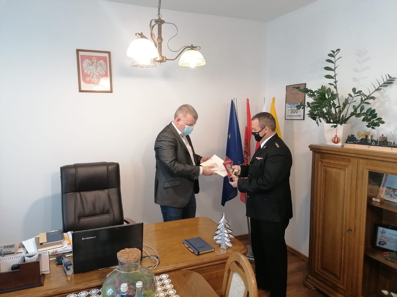 Podziękowanie Burmistrzowi Wąsosza za wkład w zakup wozu bojowego